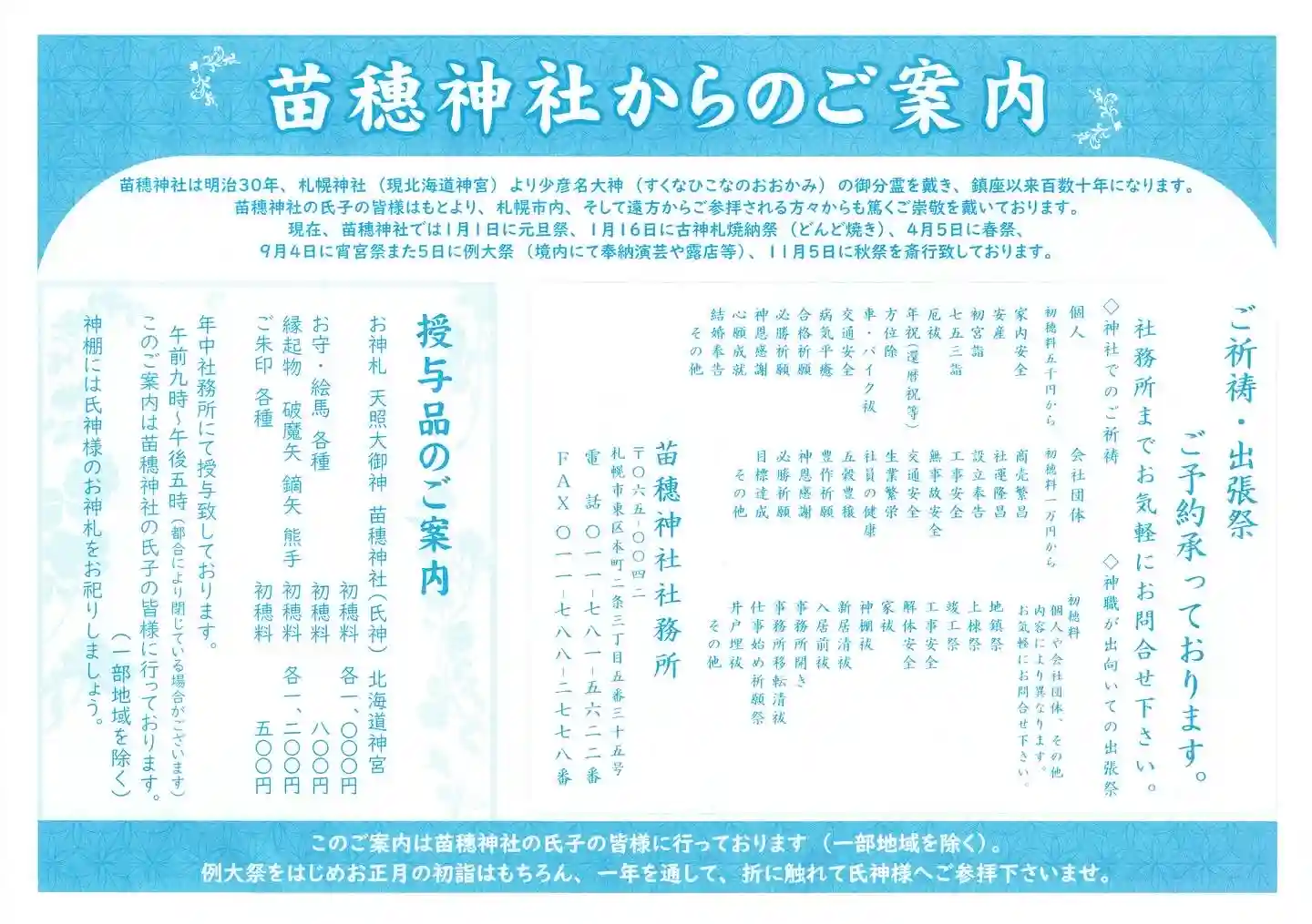 苗穗神社よりご祈祷奉仕日のご案内です。