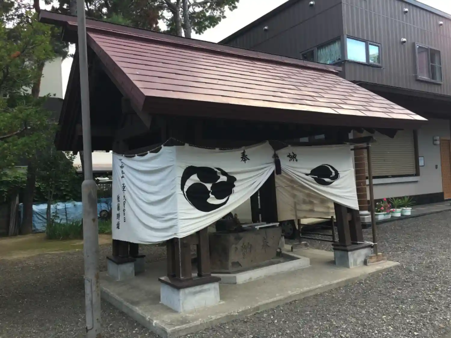 手水舎にも幕。