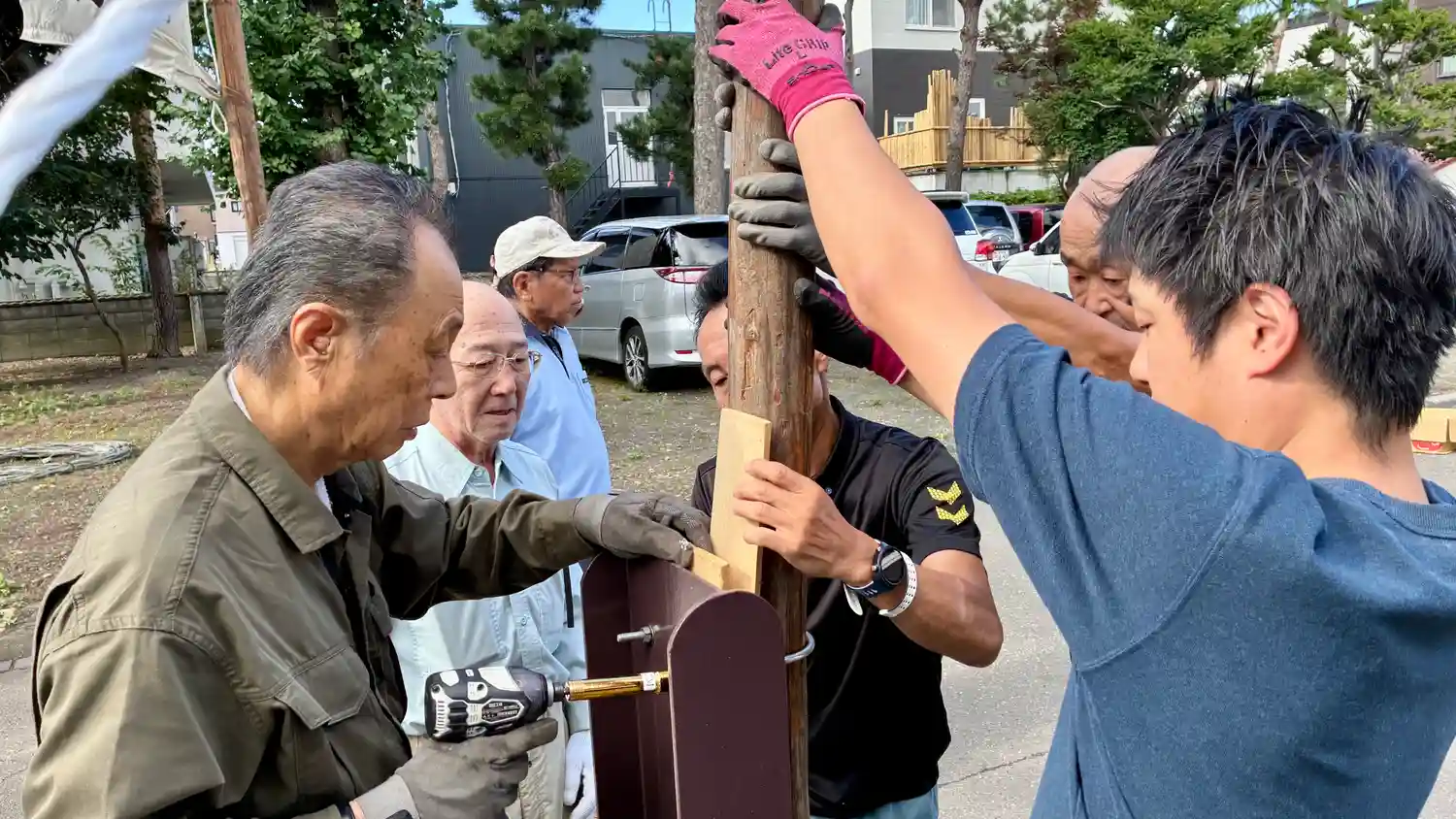 当社総代による境内冬囲い作業が行なわれました。