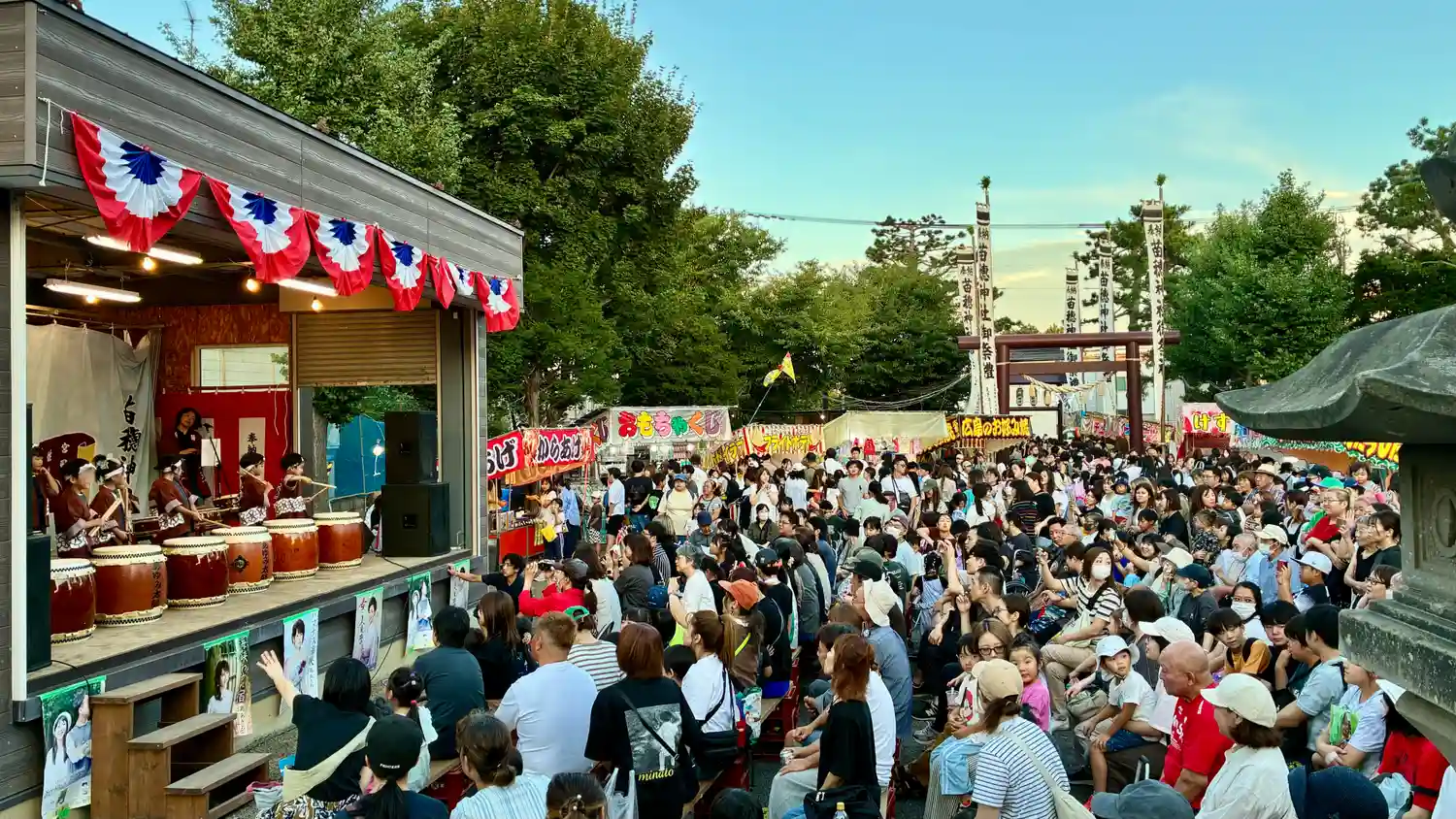 昼間に行きましたが、出店もあって普段の静かな神社とはまた違いました。