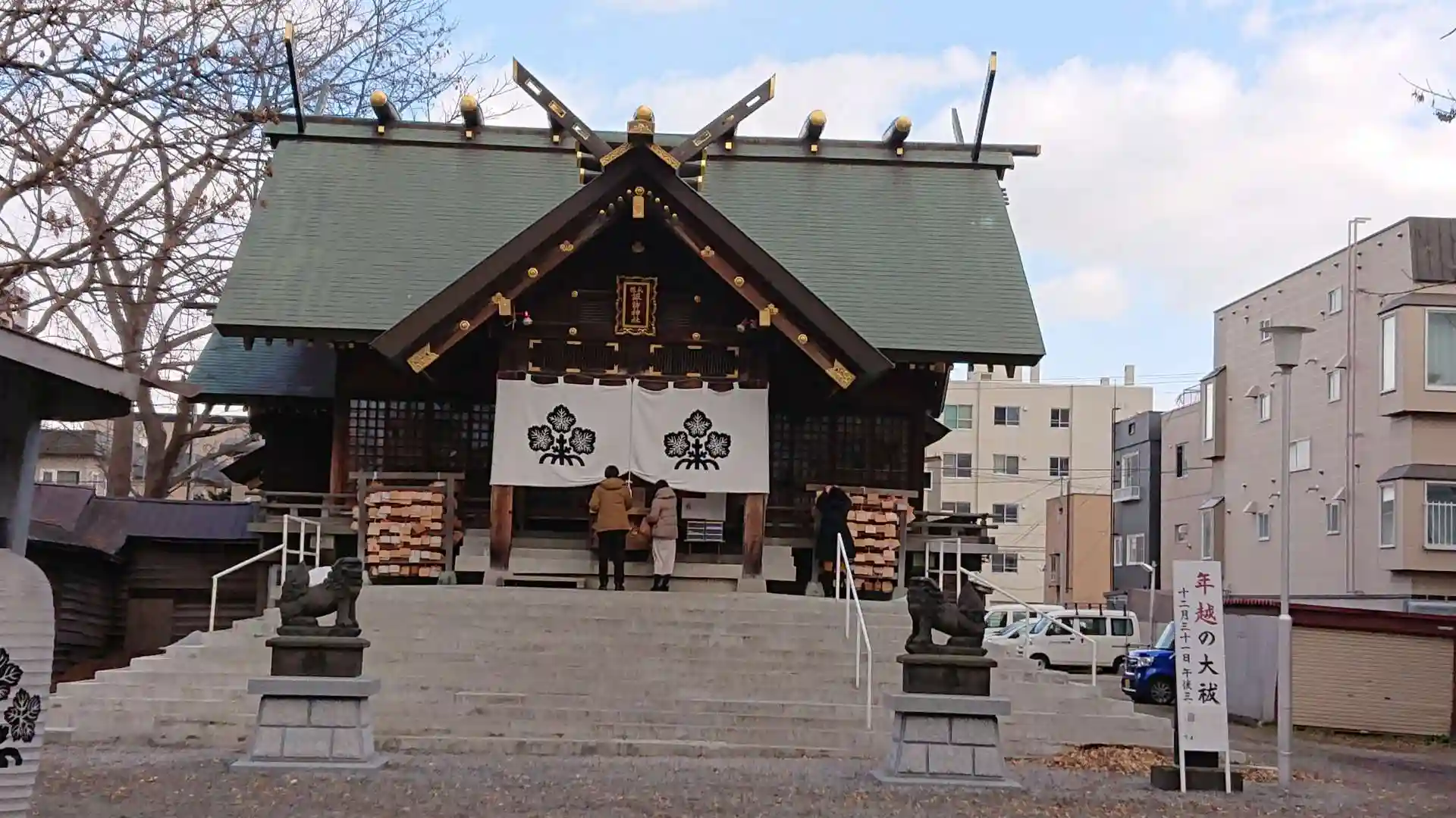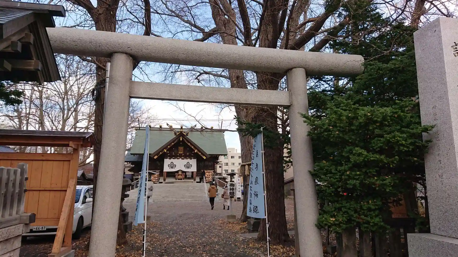 地下鉄東豊線北13条東駅からすぐ、創成川通よりに鎮座しています。もう大晦日の準備を始めているようです。師走を感じます。社務所から社殿へと連なる建物が何とも味があって、昔の北海道を感じます。私が通った小学校みたいで懐かしかった。木造の社殿は威厳があり、華美でない諏訪神社らしいなと感じました。綺麗な御朱印を戴きました。因みに初穂料は500円でした。