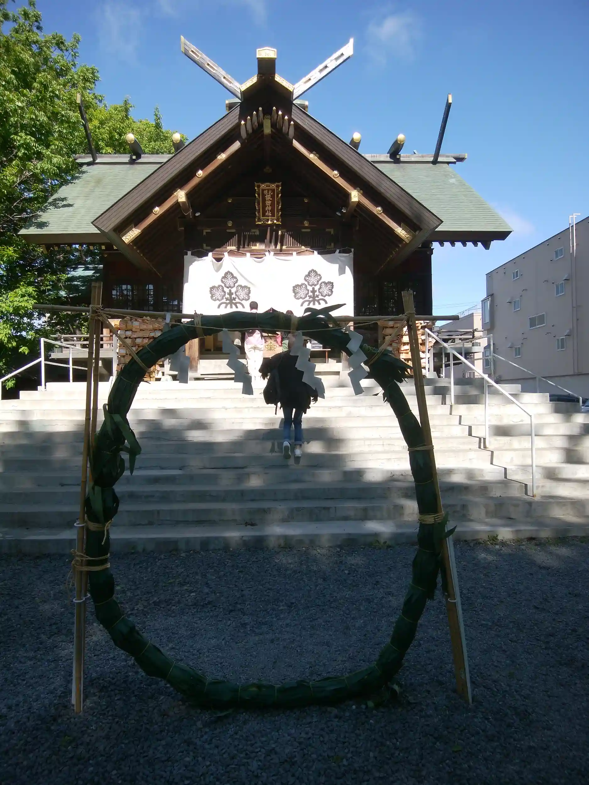 本殿の前に茅の輪が重なります⬇