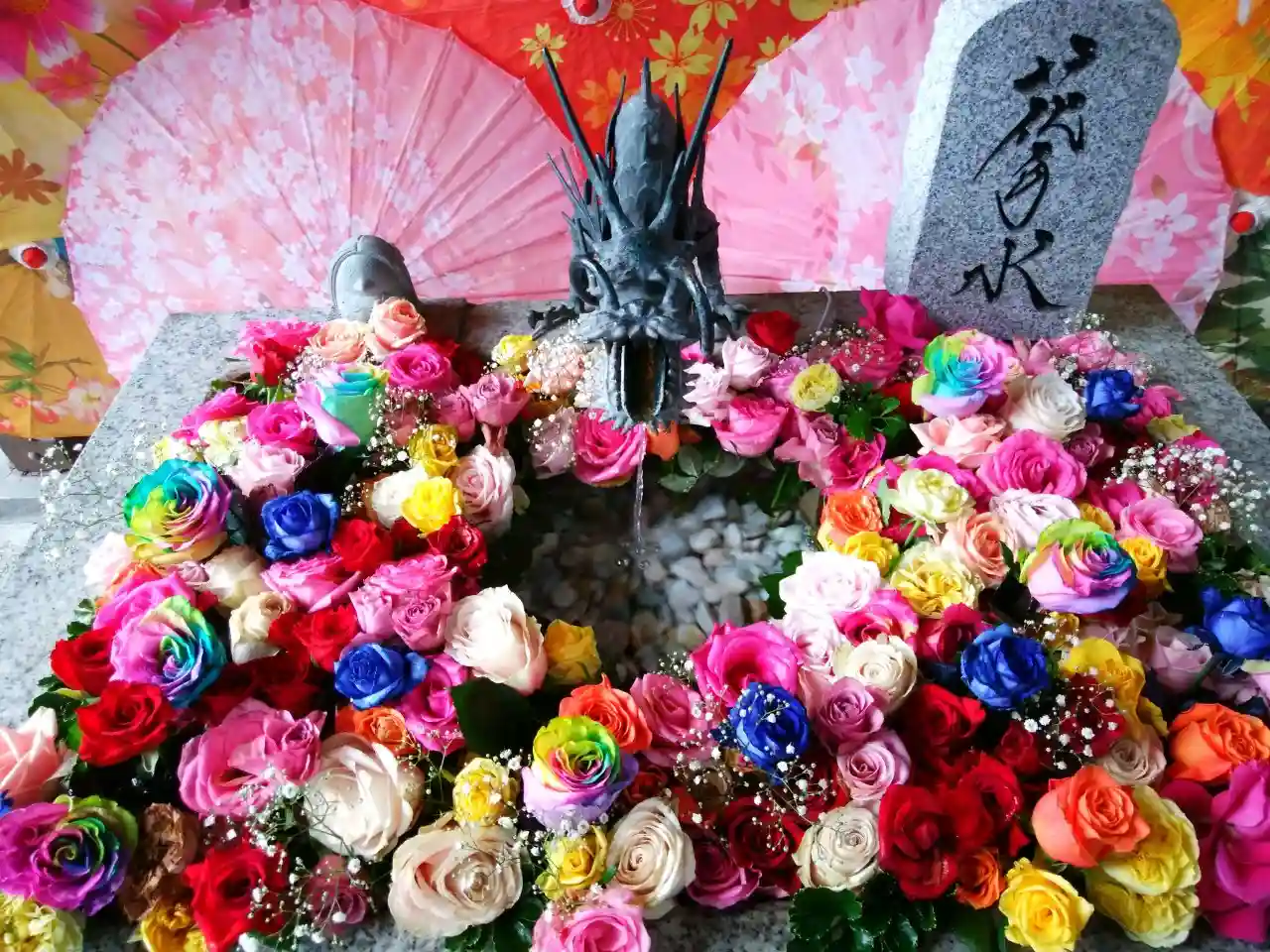カラフルで眩しい花手水✨