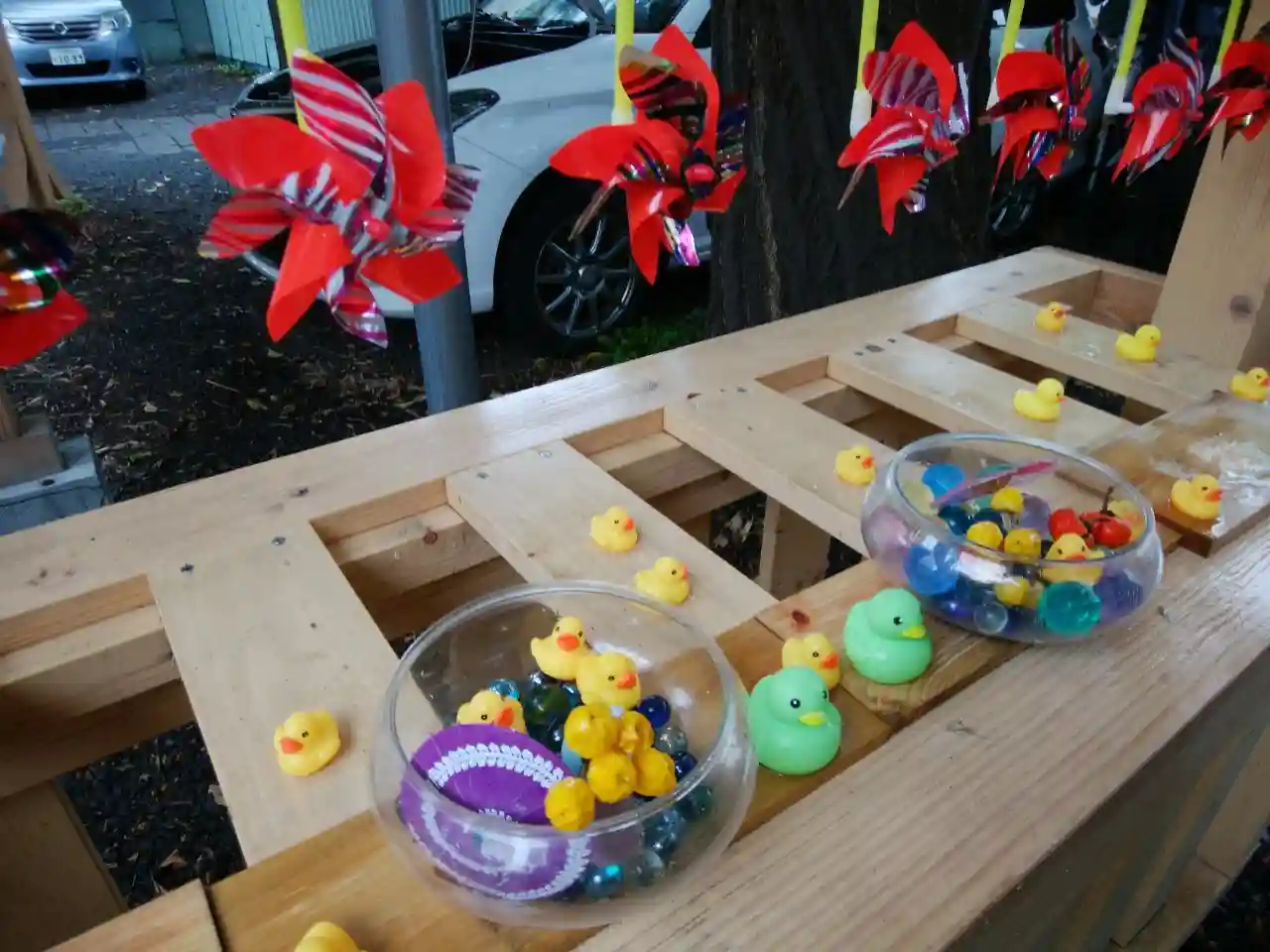 鳥居に続く風車棚 (?)