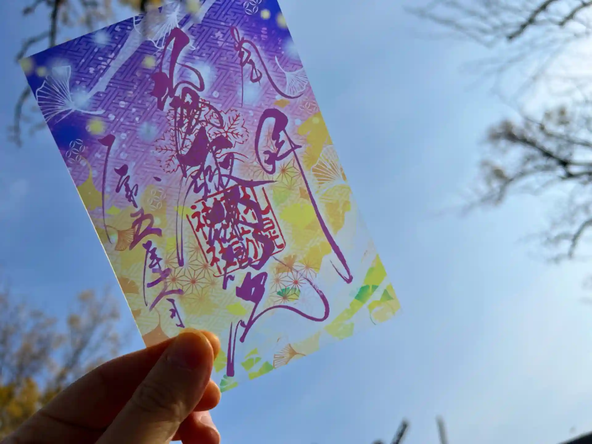 明日からの11月のクリア御朱印は夜と銀杏と和柄を絡めたデザインとなっております😊⛩️