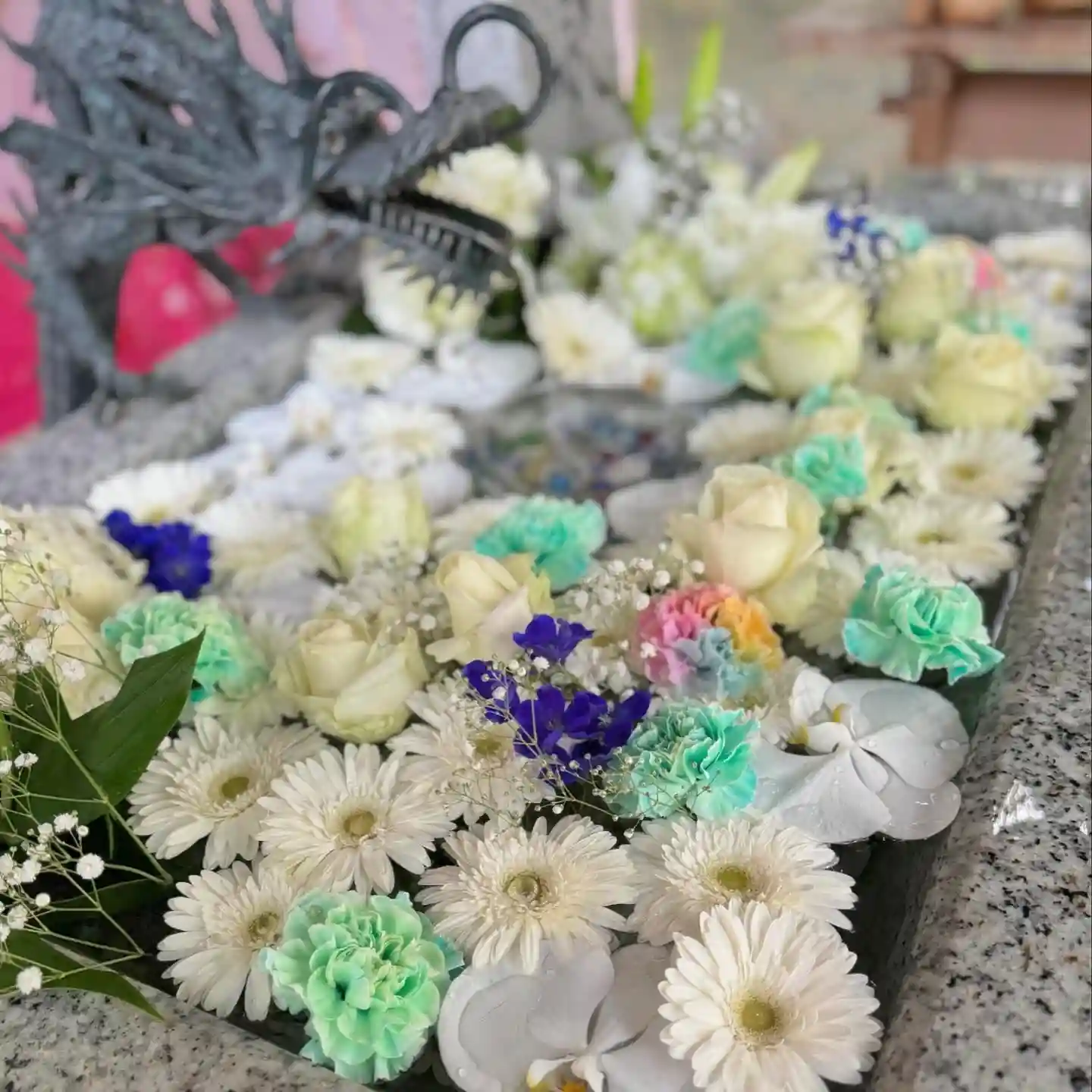 久しぶりに花手水を新しくしました😊