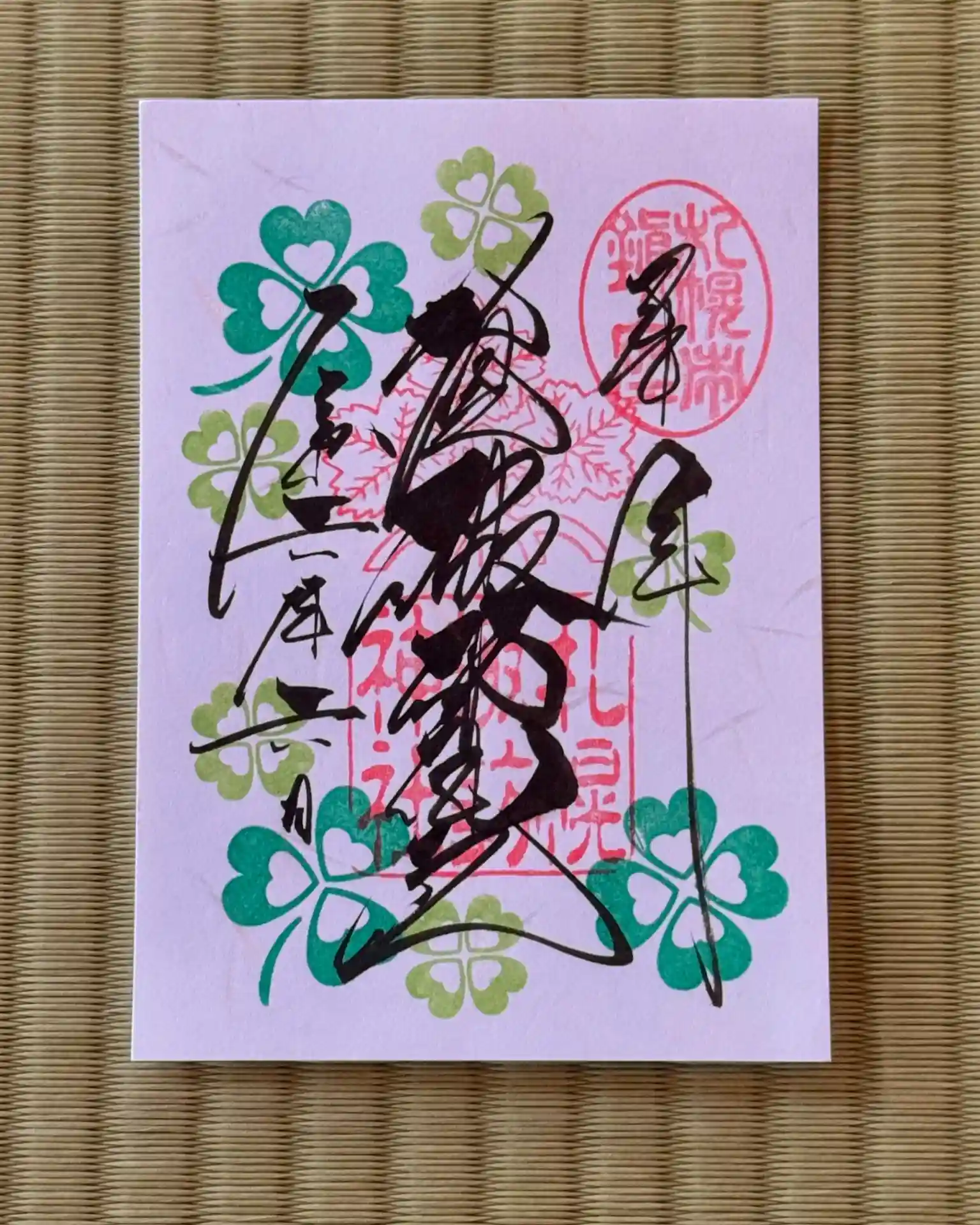 6月の御朱印は幸せの四つ葉のクローバーです🍀