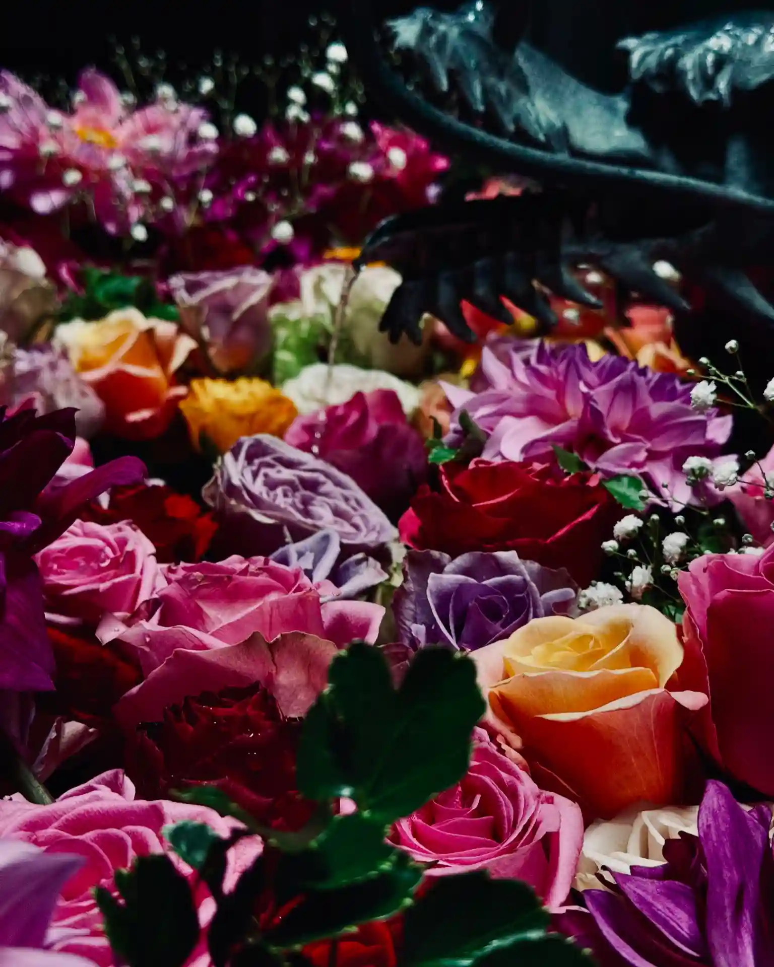 今年も情熱的な花手水にできました🌹