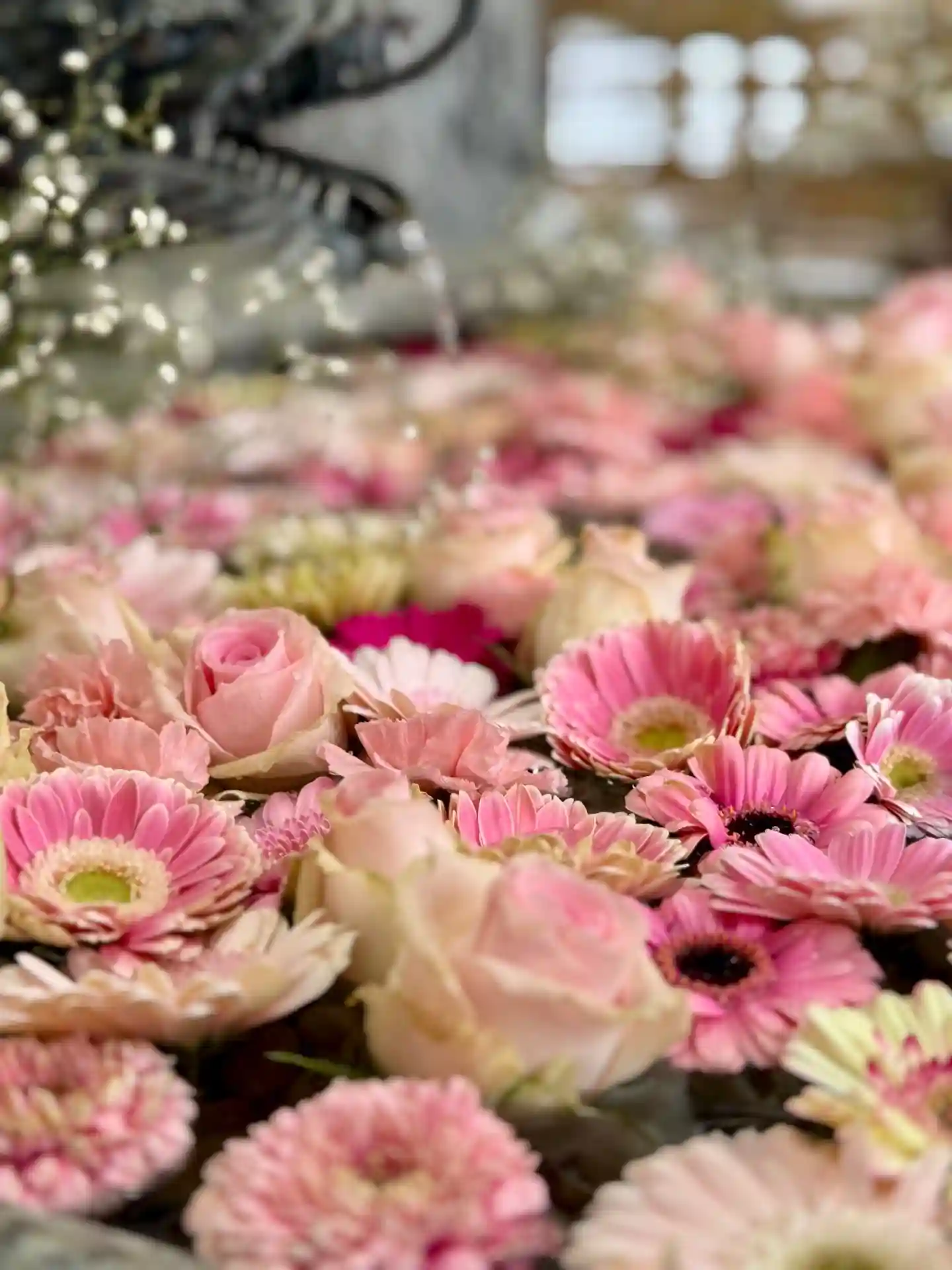 花手水はピンクになっております🌸