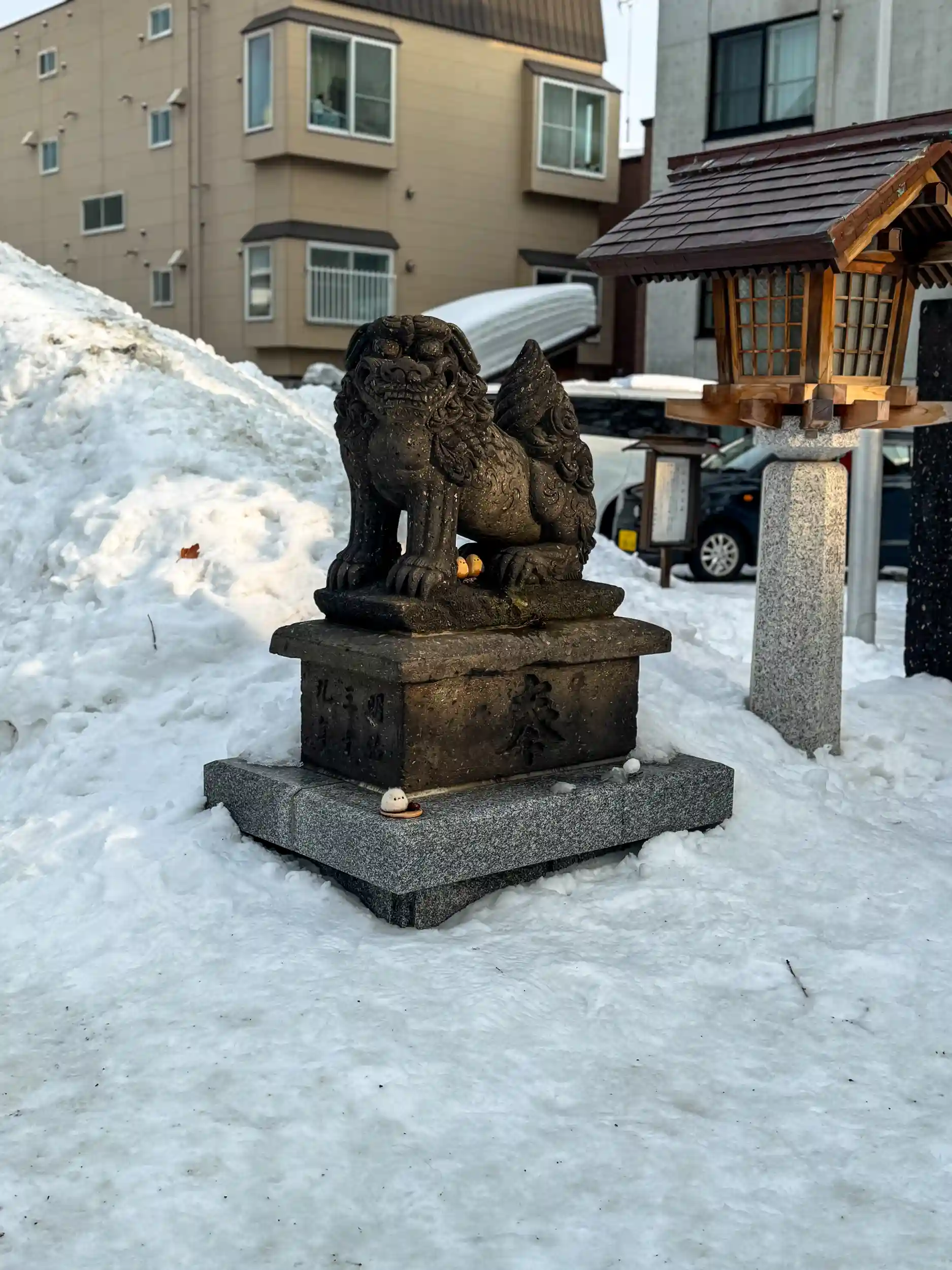 1ヶ月振りの再訪ですが狛犬前の鳥の形をした雪だるまとか