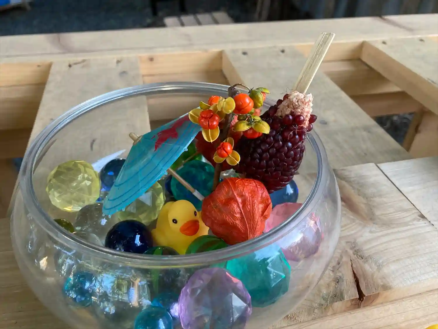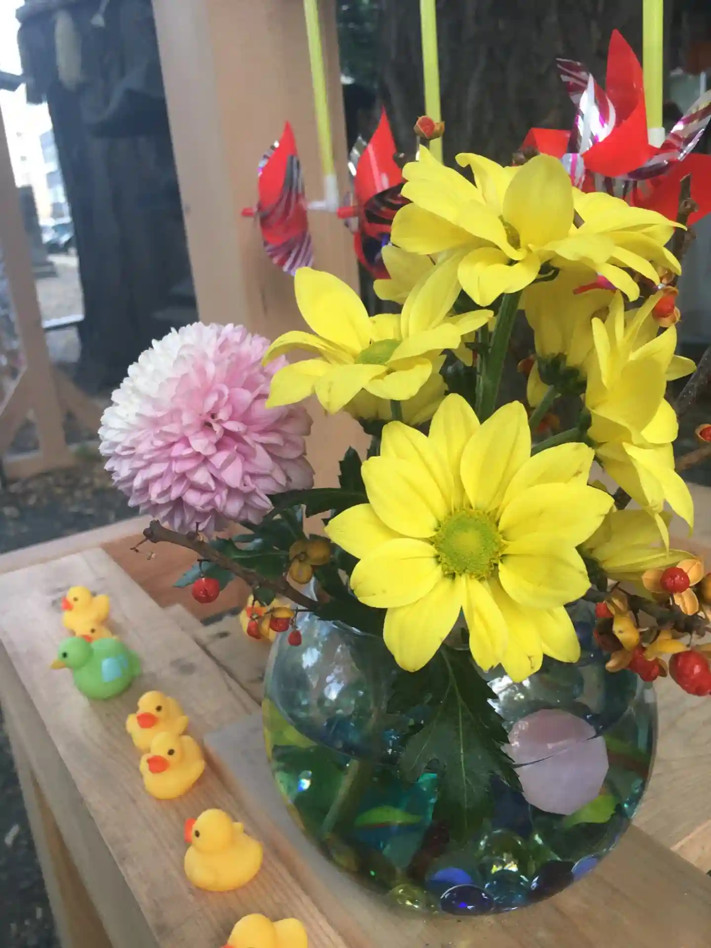風車の下に飾ってま…