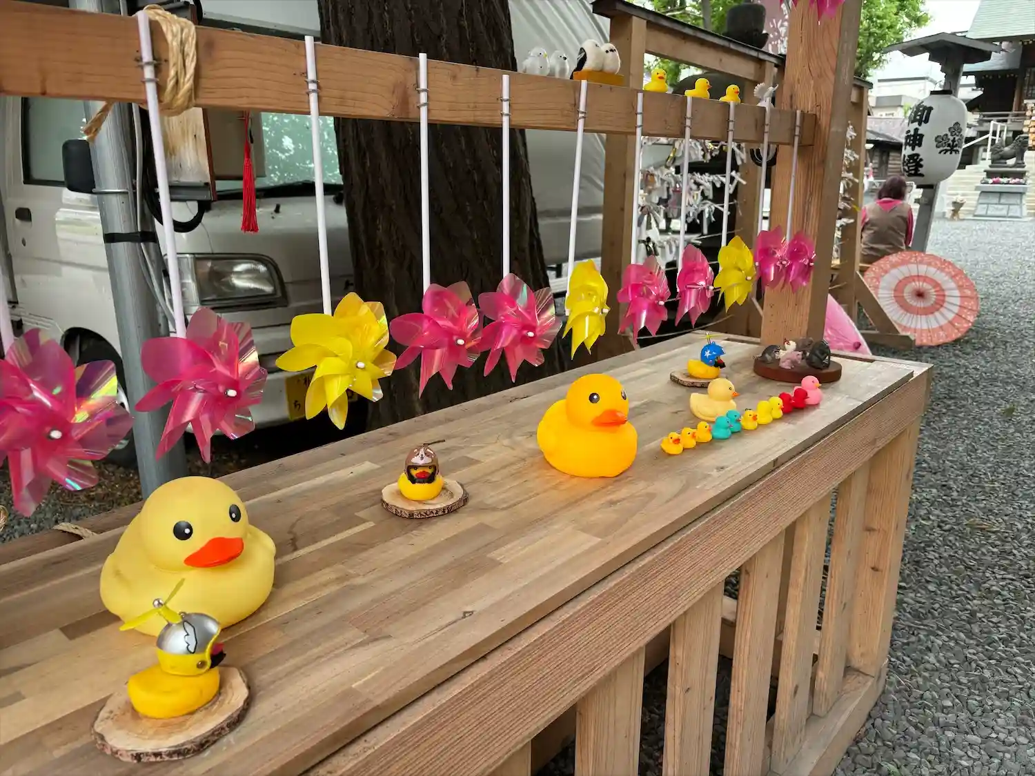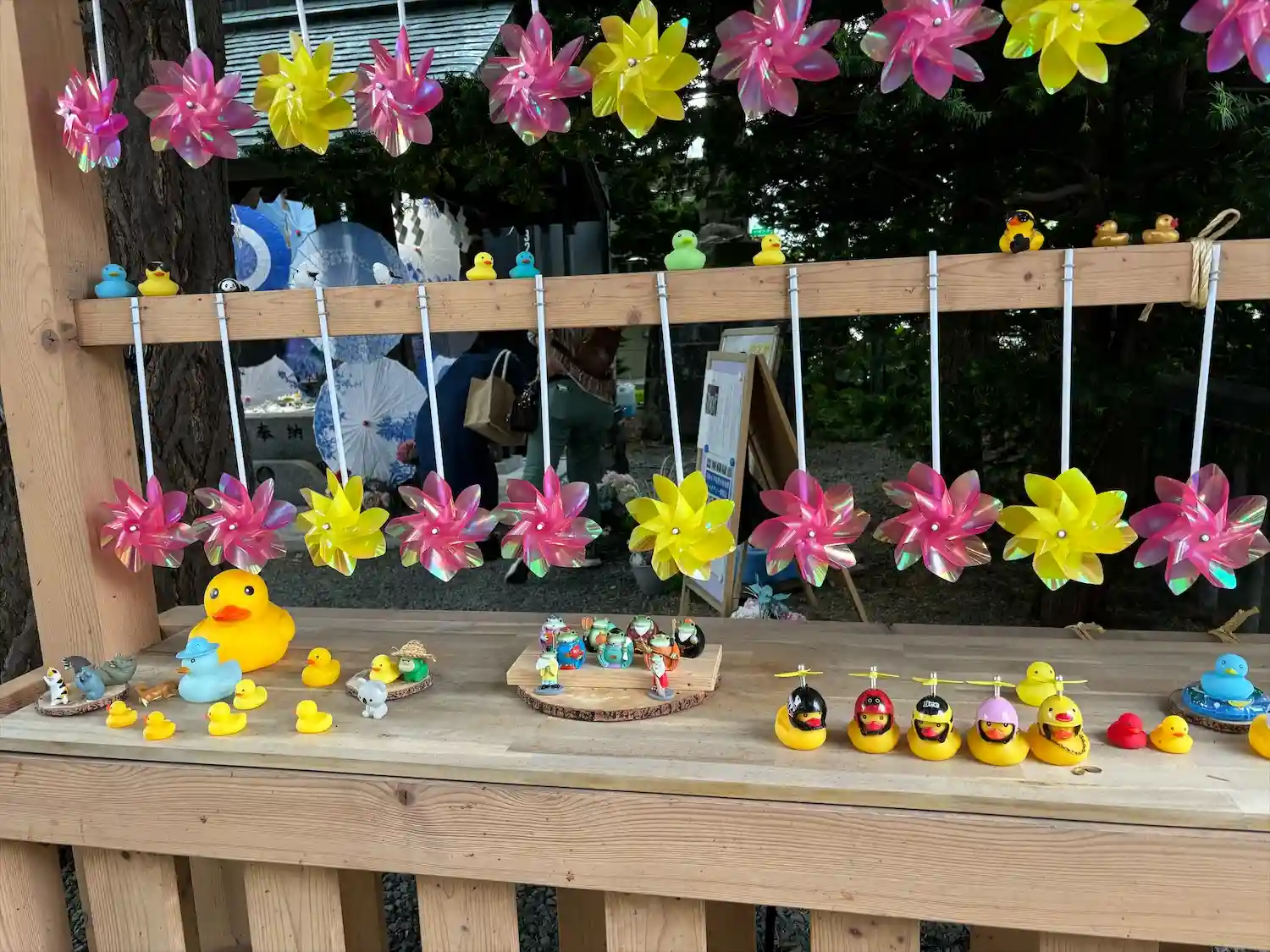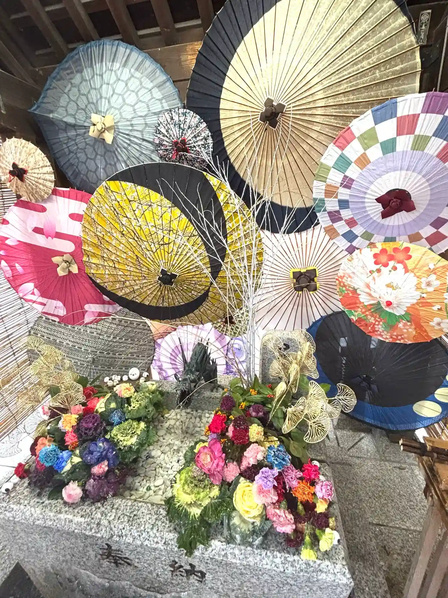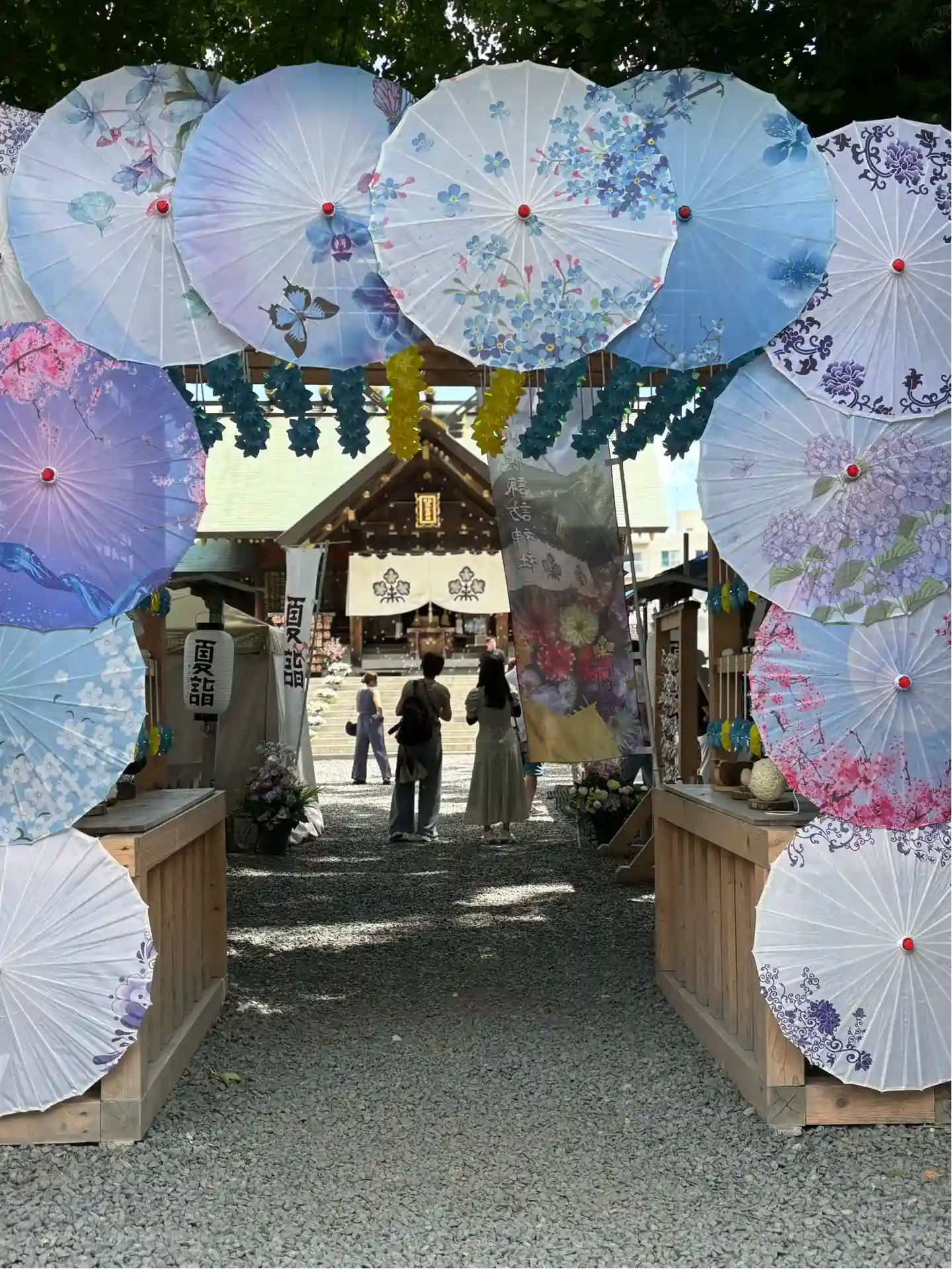 鳥居の風車棚にも和傘が設置されて華やか😊