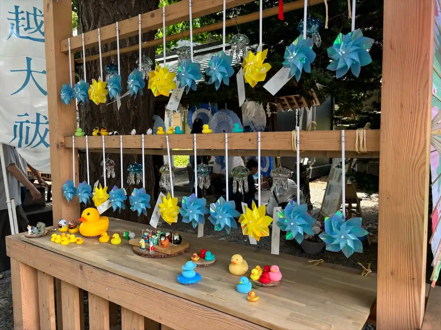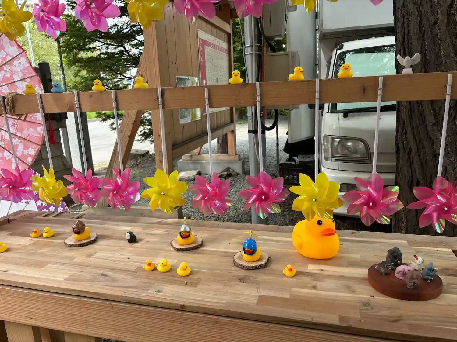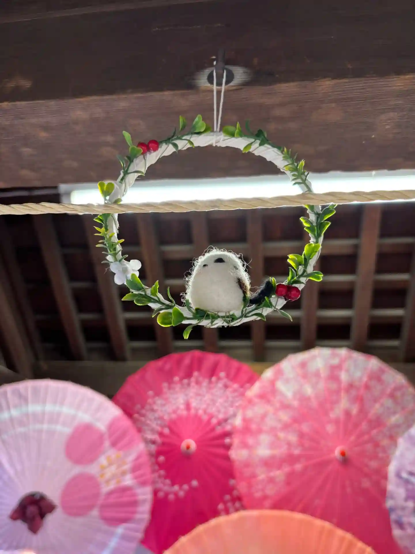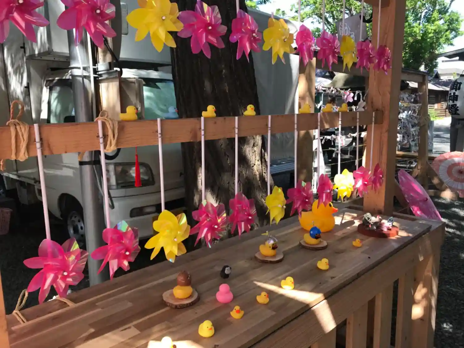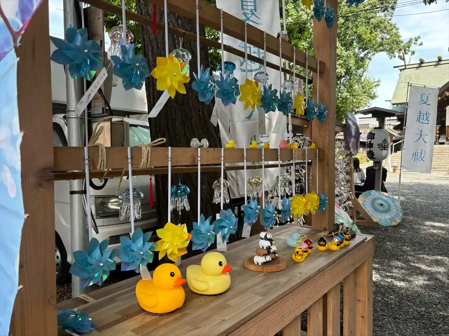 鳥居の風車棚にも和傘が設置されて華やか😊