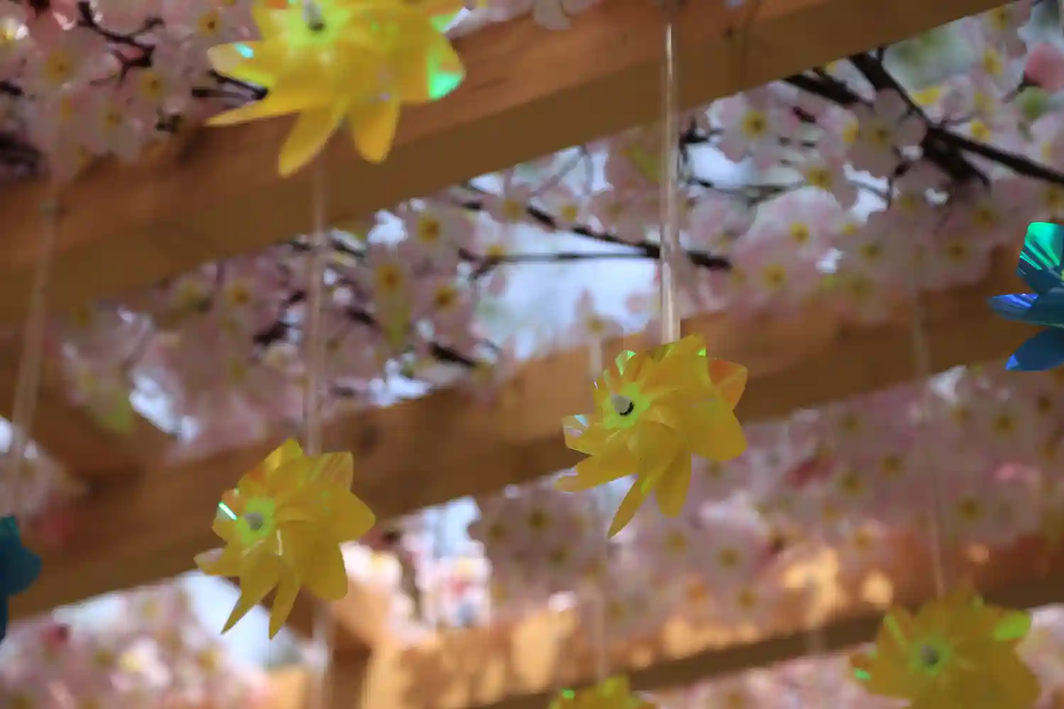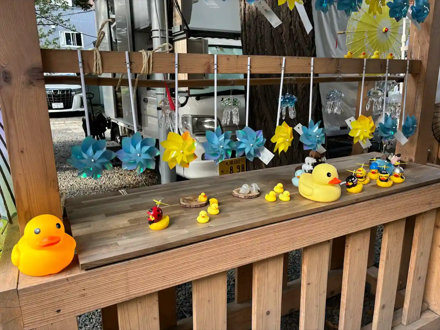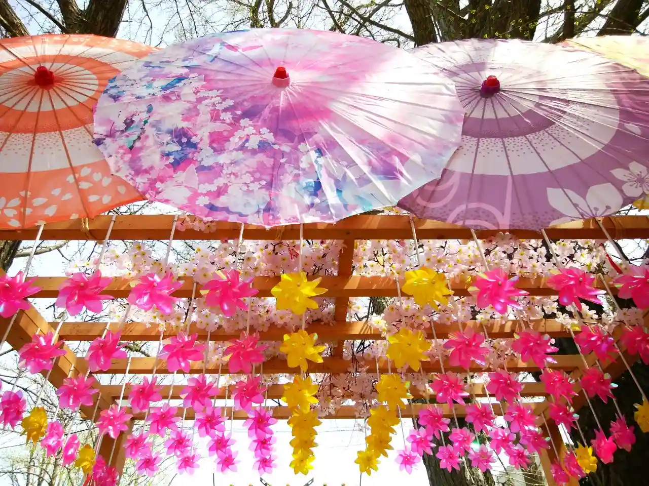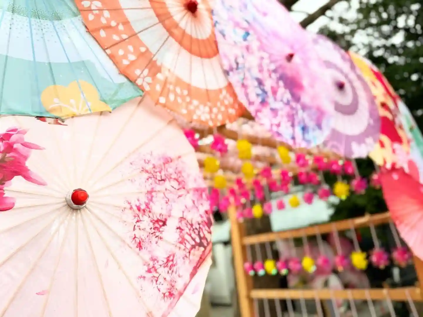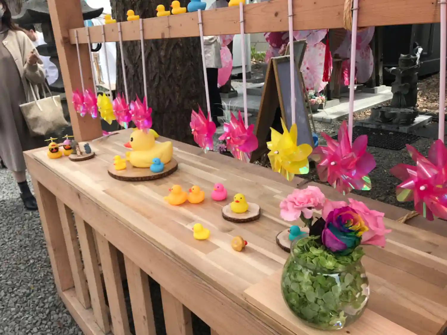 鳥居の風車棚にも和傘が設置されて華やか😊