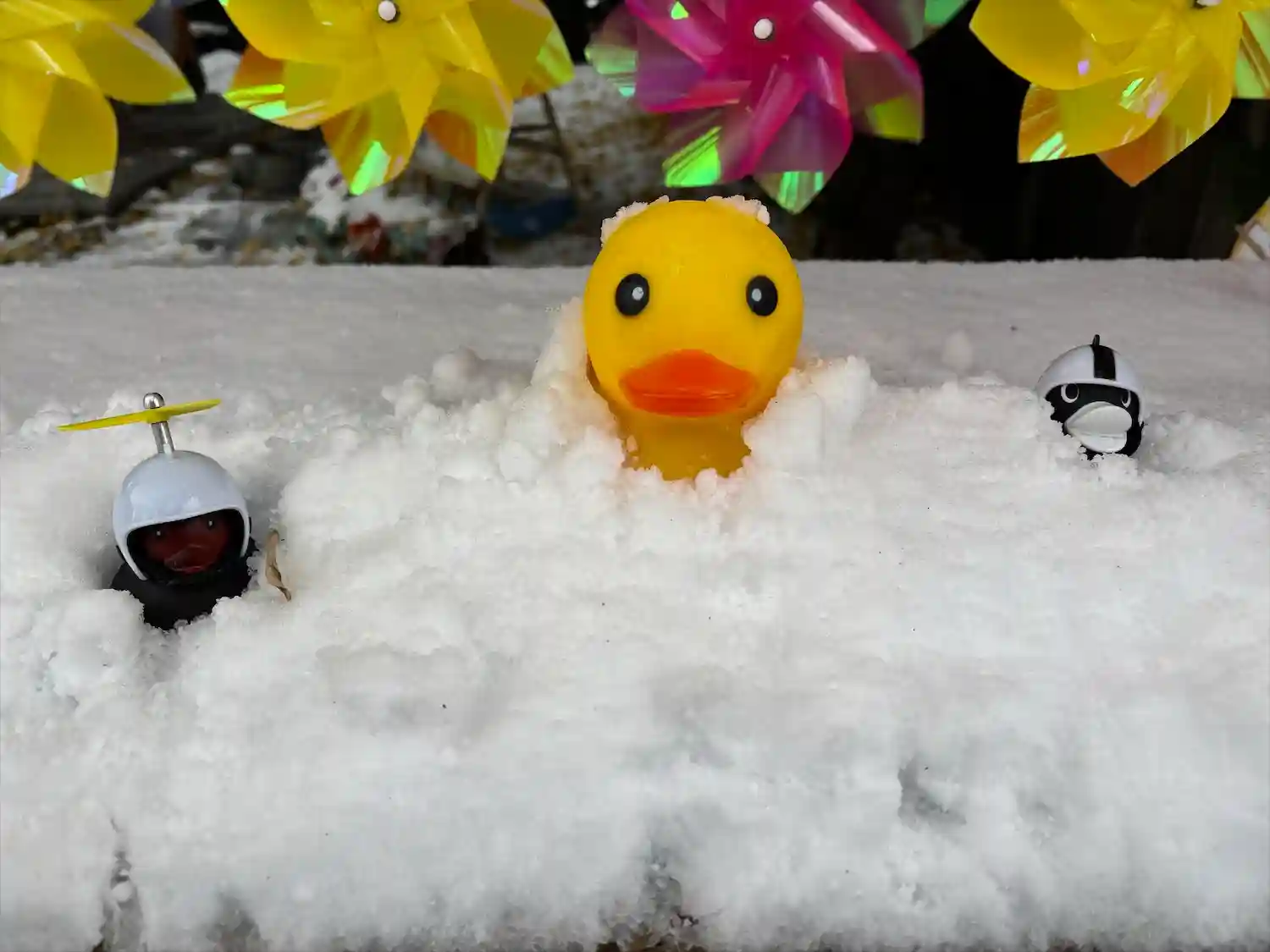 アヒル隊に兜をかぶせました😊