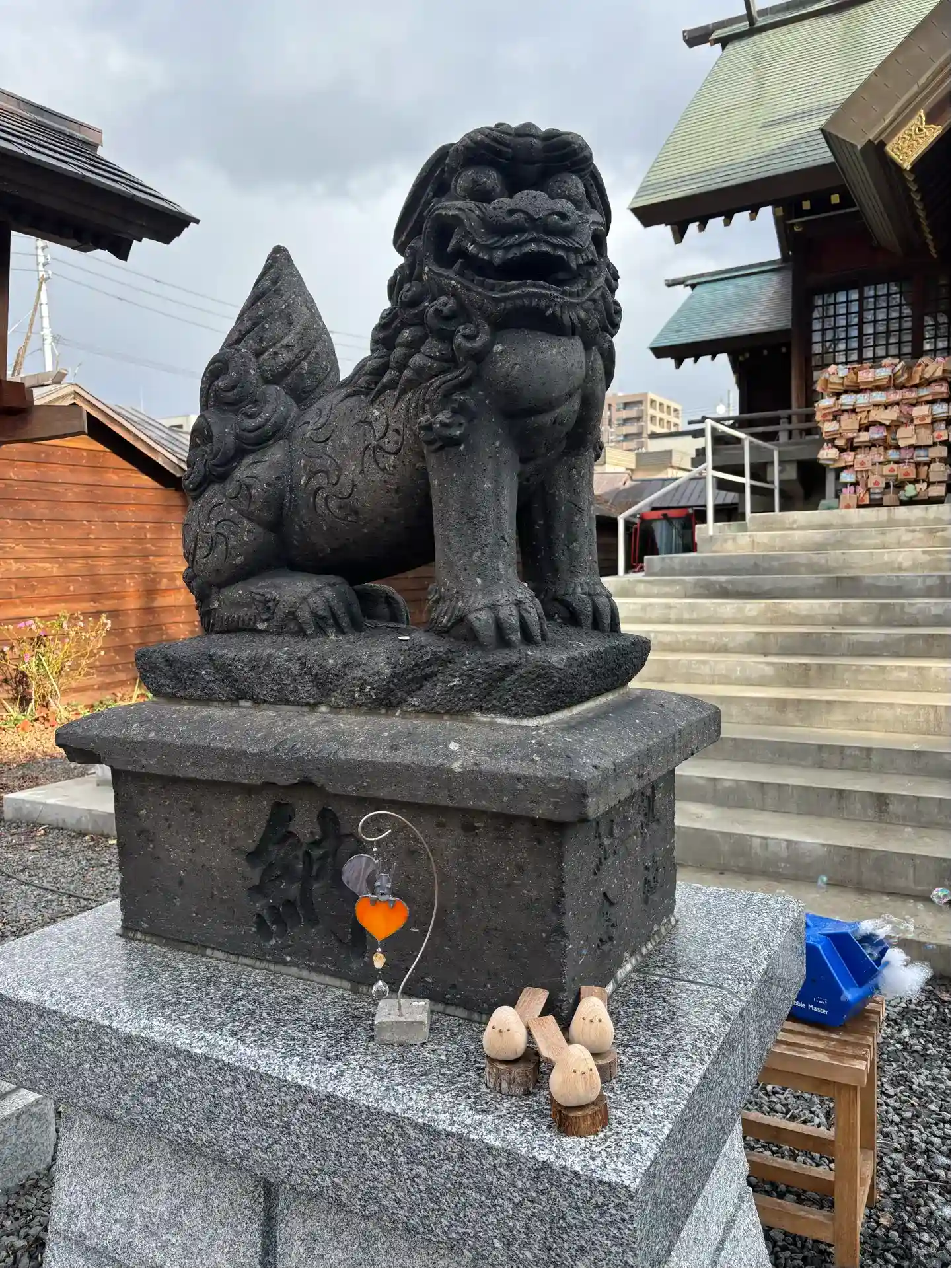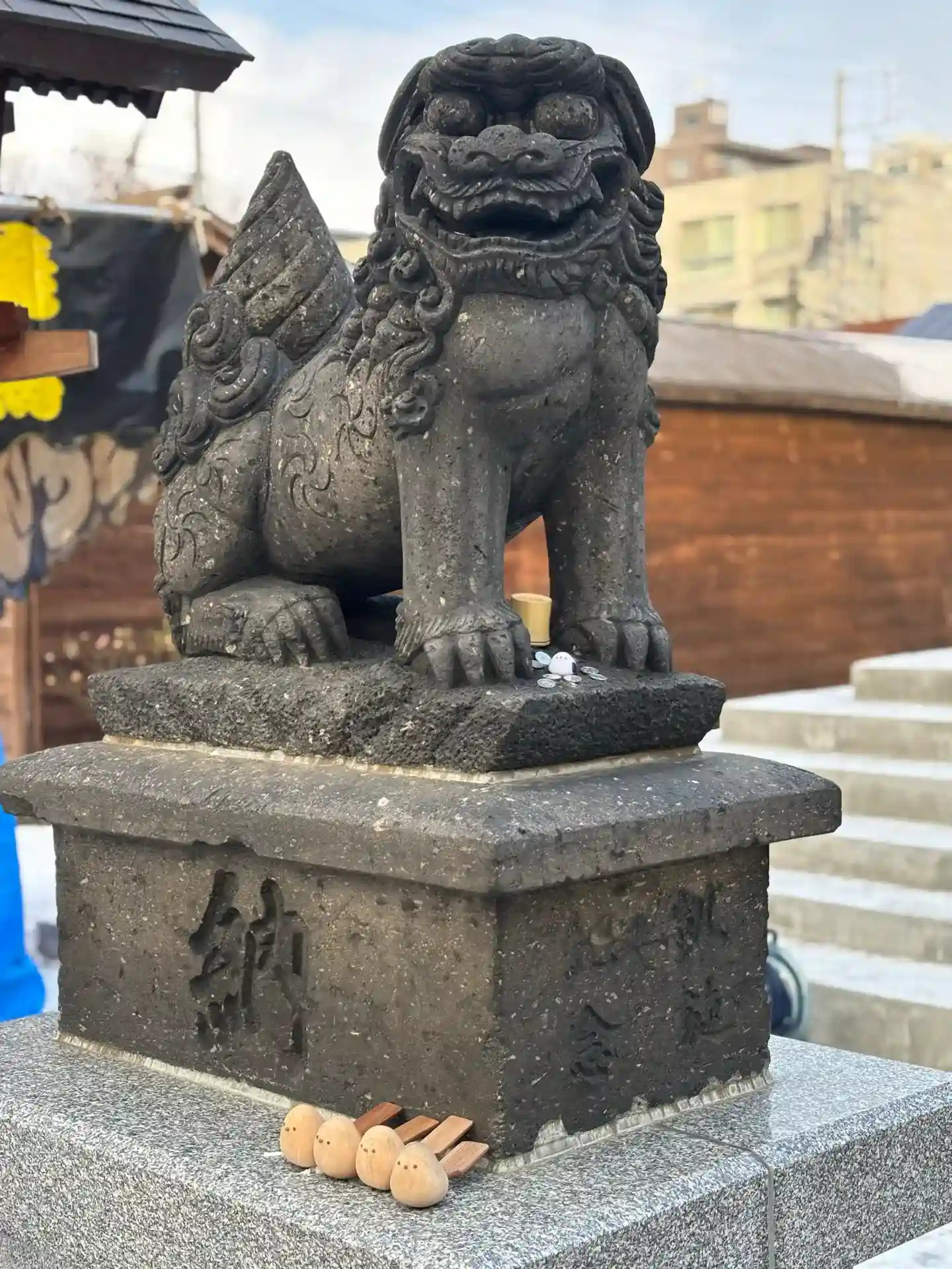 こちらの左側の狛犬さんはお仕事のパワーを頂けるそうです。娘…