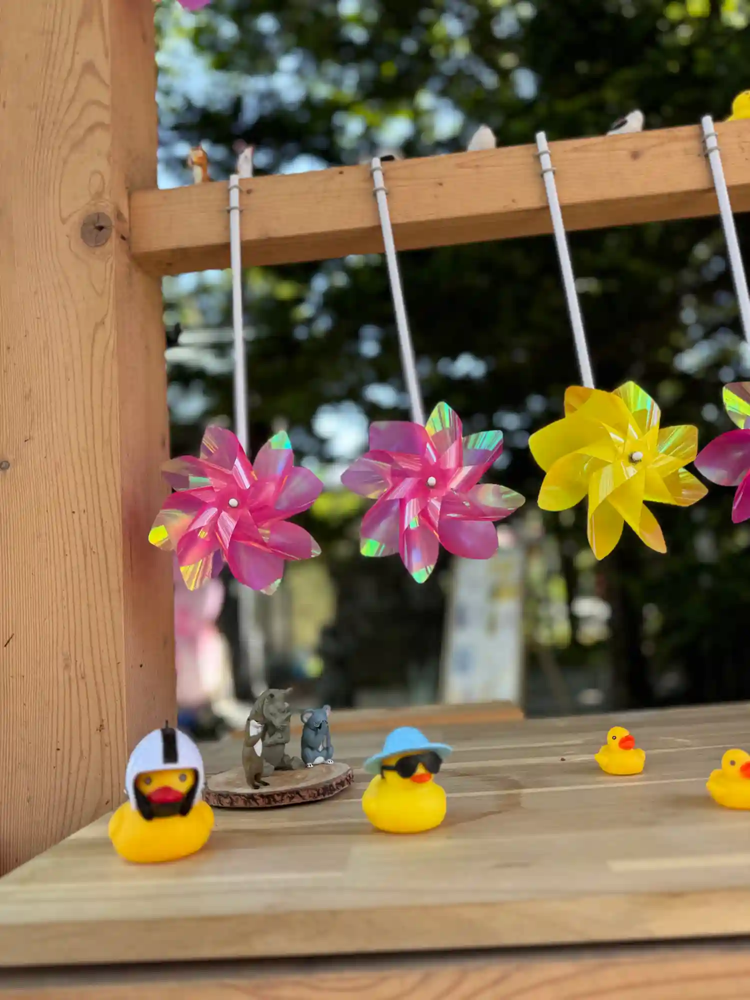 風車の下には可愛い仲間がたくさん並んでいます