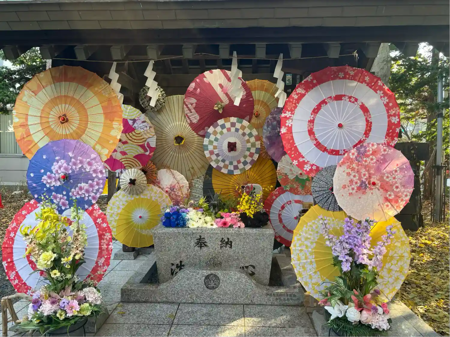 境内に傘を飾りました😊⛩️