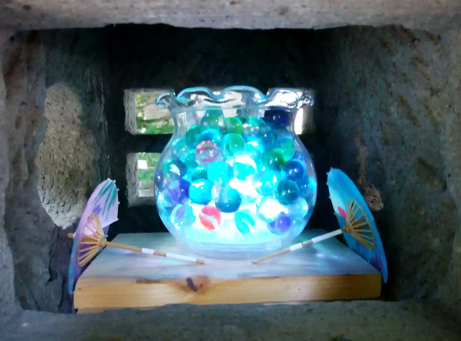 鳥居です。和傘と見えにくいですが風鈴も飾ってあります。
