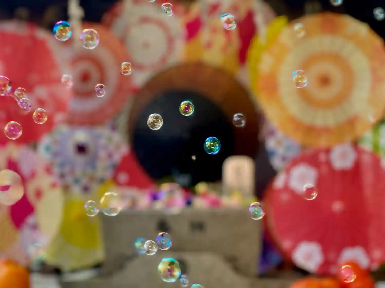 鳥居も可愛らしく飾ってあり、境内にはシャボン玉が飛んでいました。