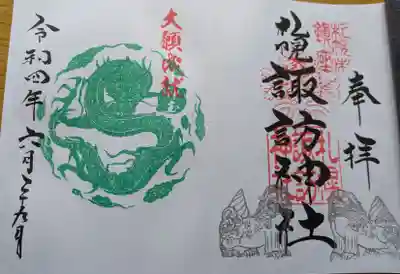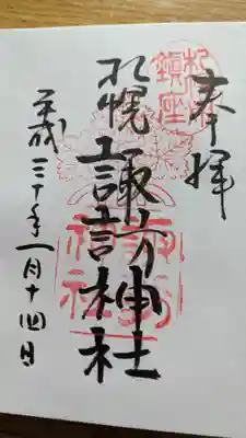 真ん中に札幌諏訪神社と書かれ、社紋である明神梶の葉紋と札幌諏訪神社の印が押されています。