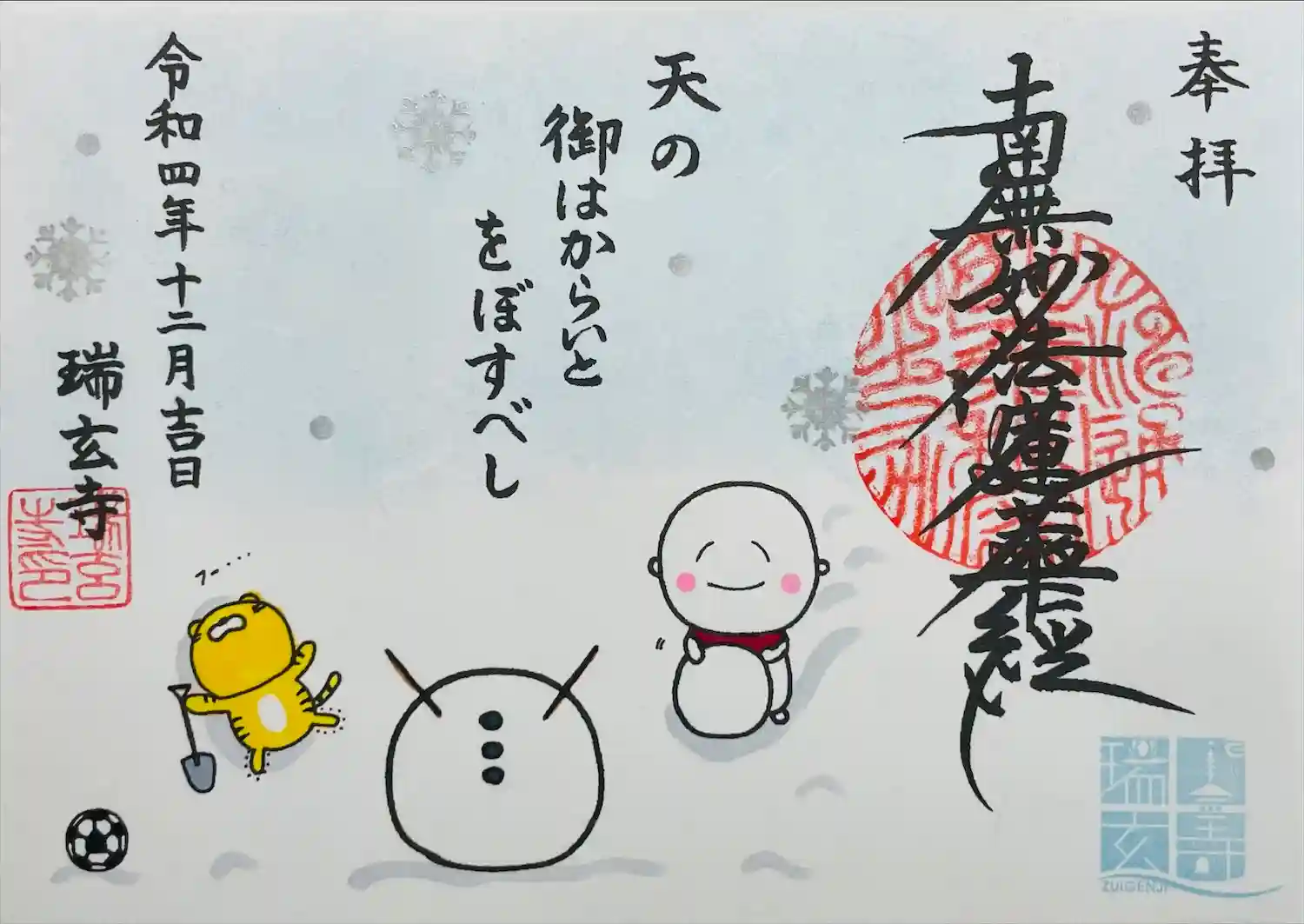 瑞玄寺の12月の御朱印です