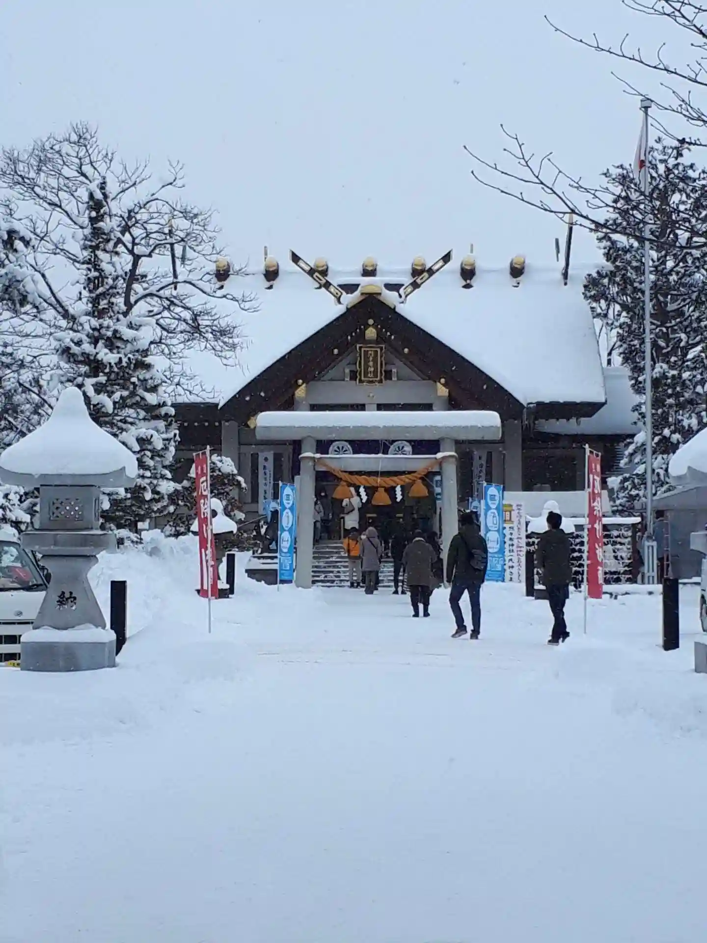 雪が積もった灯籠素敵💕と写真を見ていたのに、どうしても後ろの焼き芋🍠に目がいっちゃいます笑