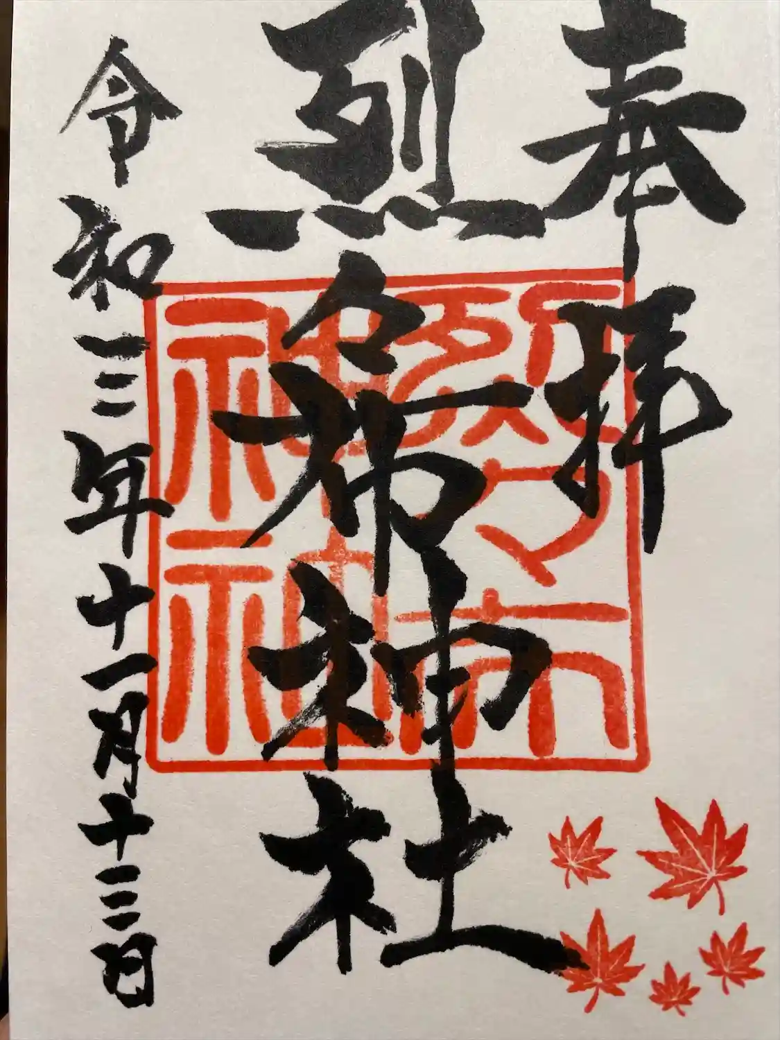 子どもの頃お祭りに来た懐かしい神社でした。直書きでいただいた御朱印の紅葉が素敵です🍁