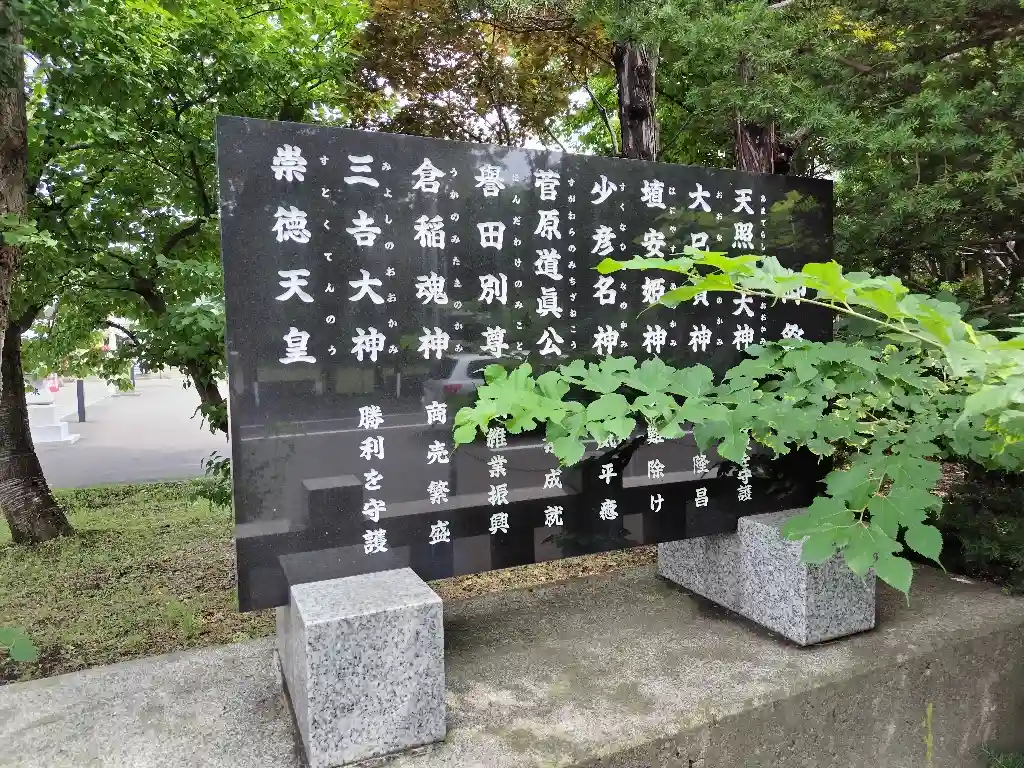 天照大神、少彦名神、大巳貴神、倉稲魂神、埴安姫神、誉田別尊、菅原道真公、藤原三吉命、崇徳天皇となっており、さまざまな御利益がありそうです。