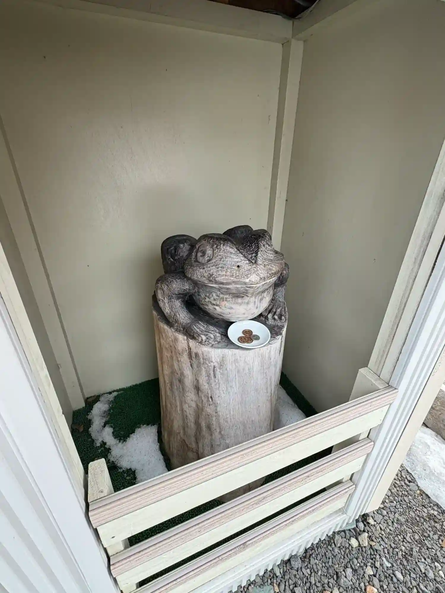 御神木、むすびの銀杏や、カエル(撫でカエル)が沢山お祀りされていらっしゃいます。手水もカエルの口から水が出ます。