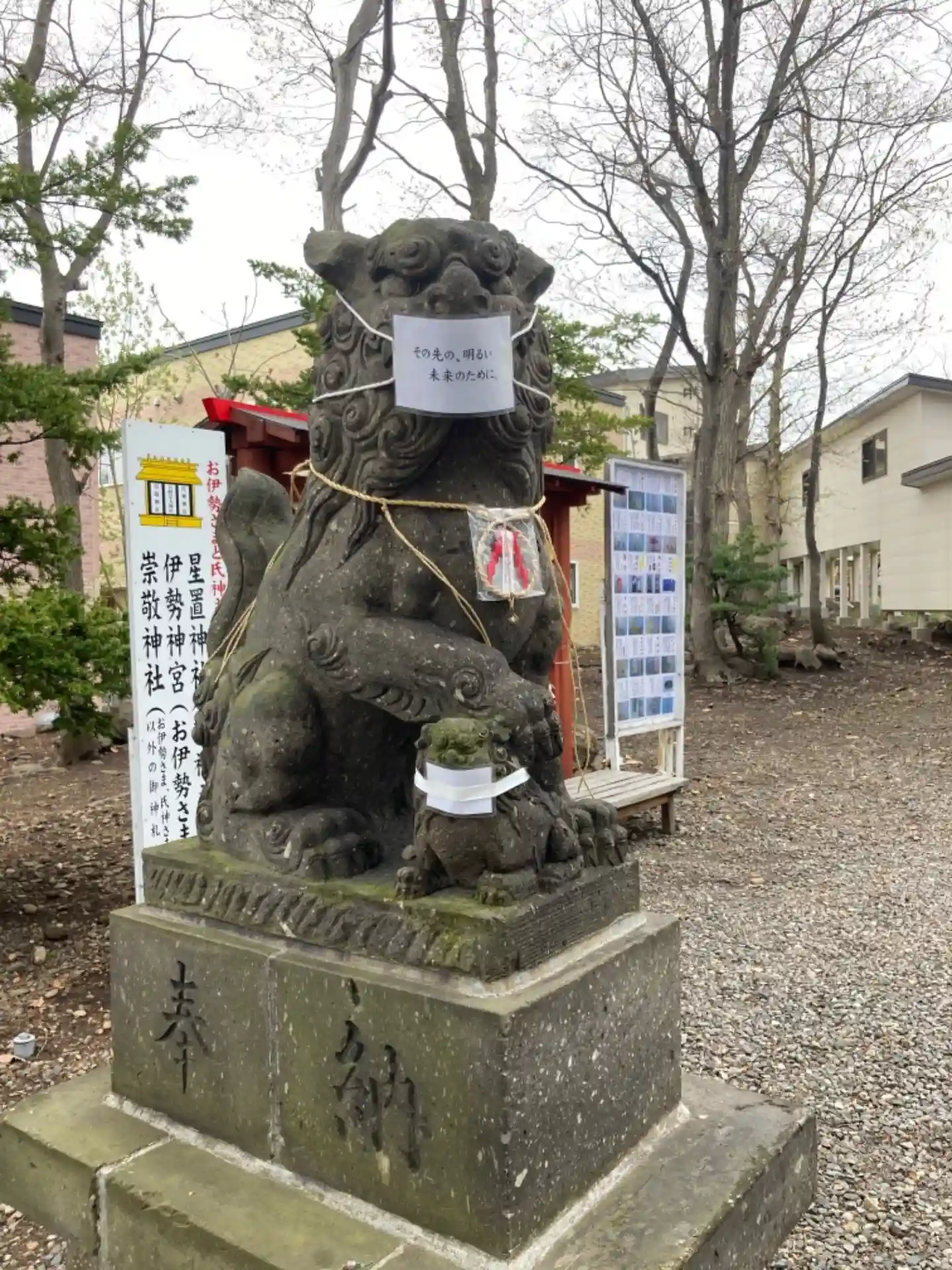 狛犬さんもマスクで予防