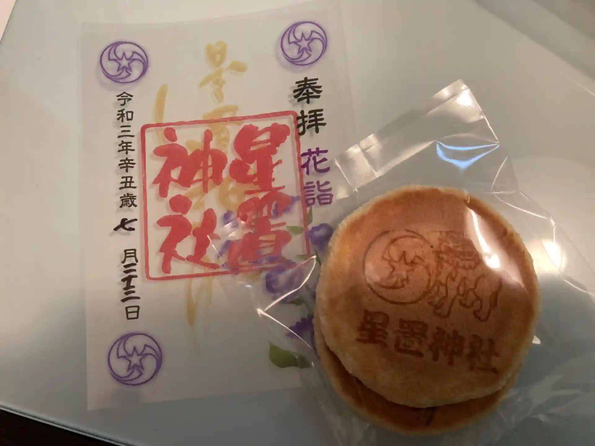 花詣限定のクリア御朱印と大好きなおせんべい♪