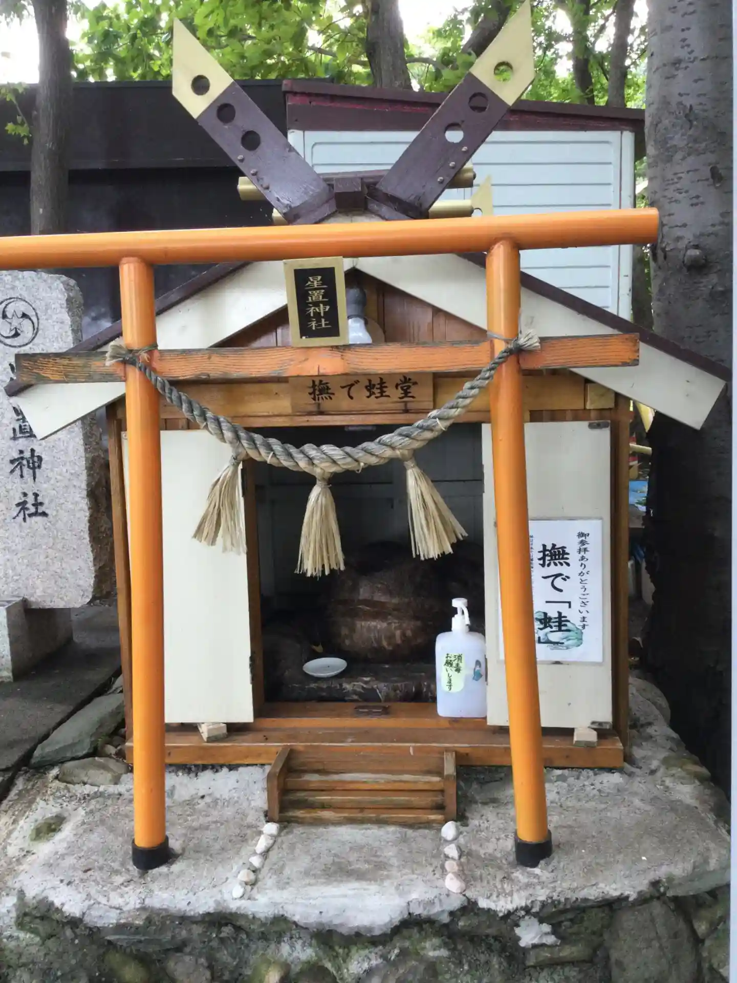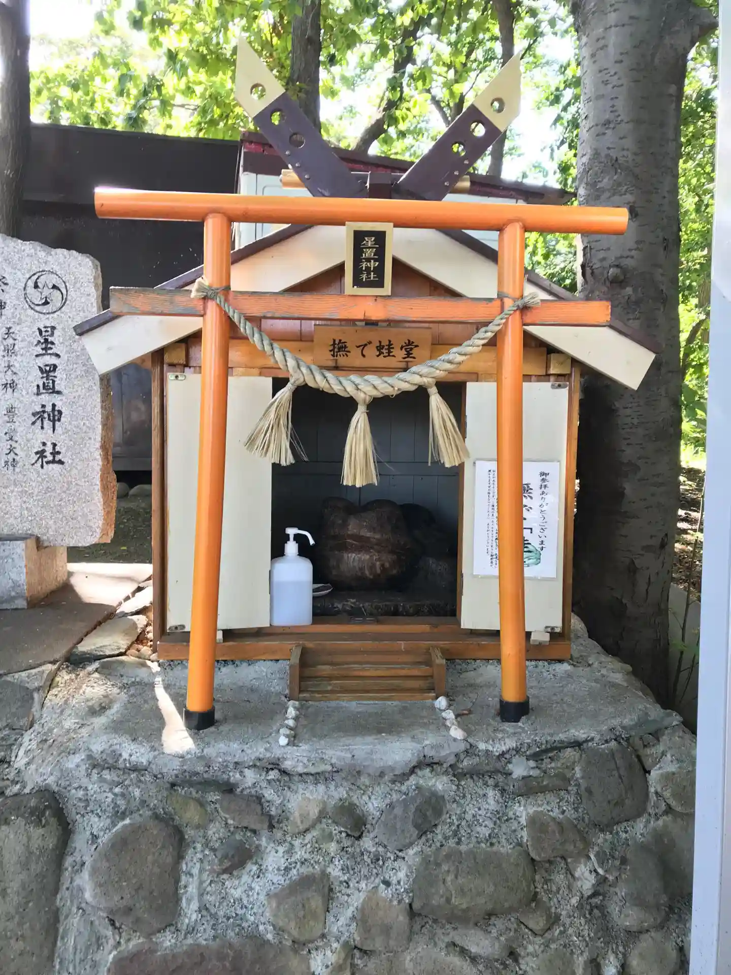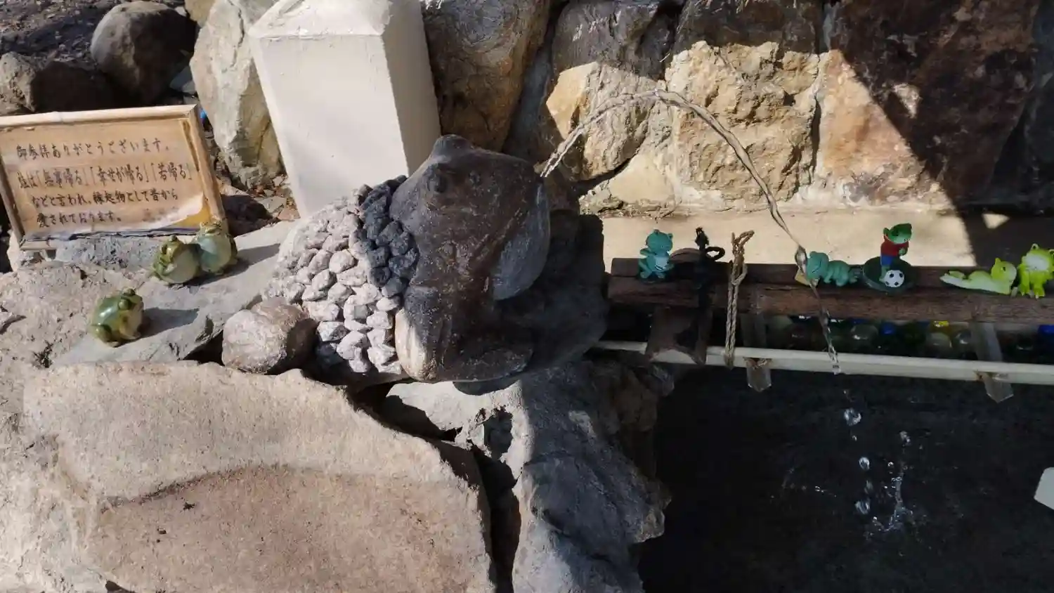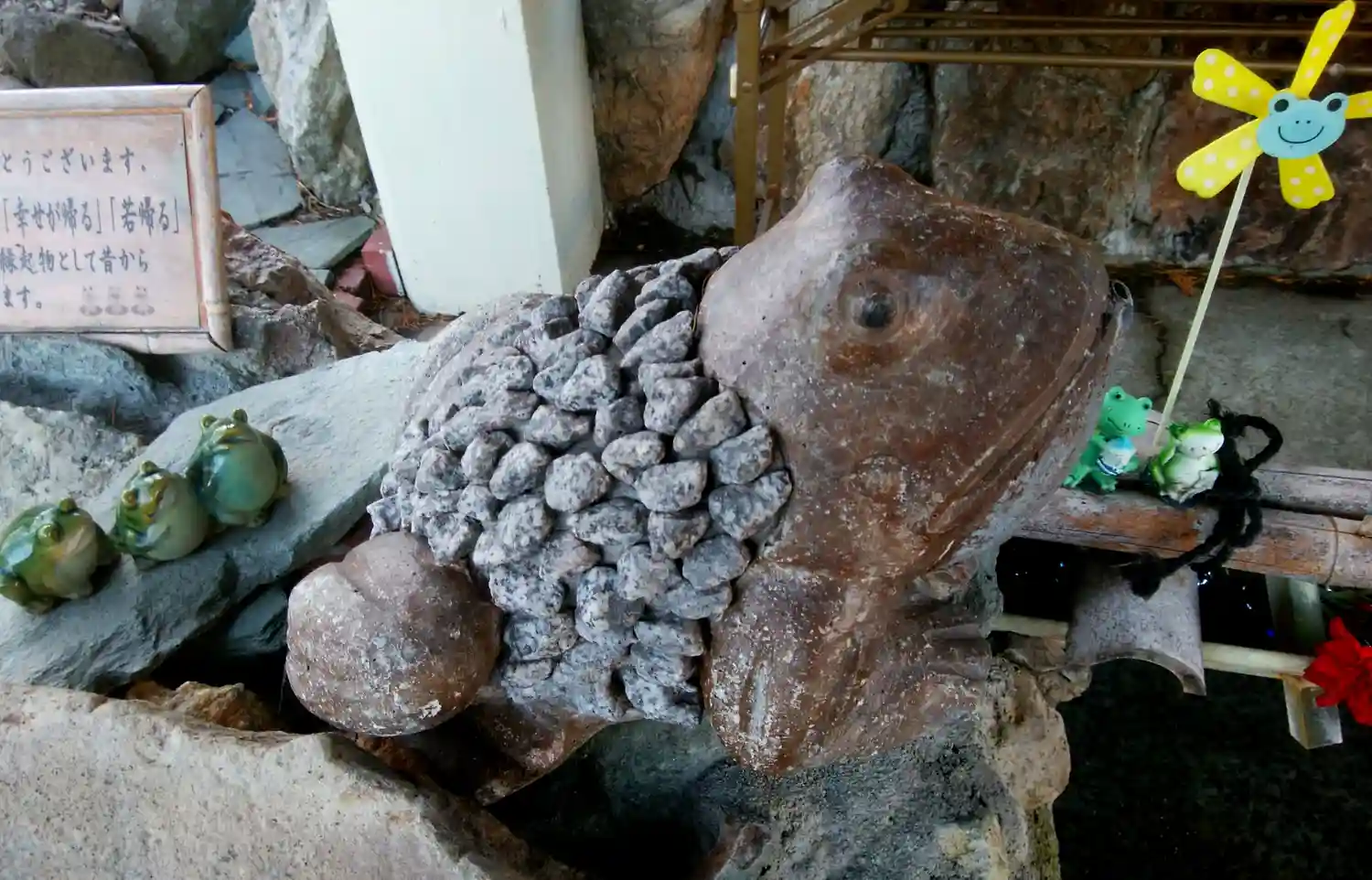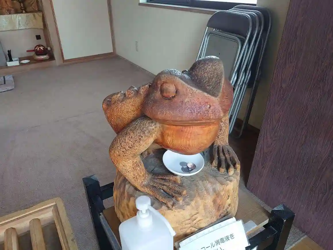 鳥居のすぐ横でカエル様がお出迎え。