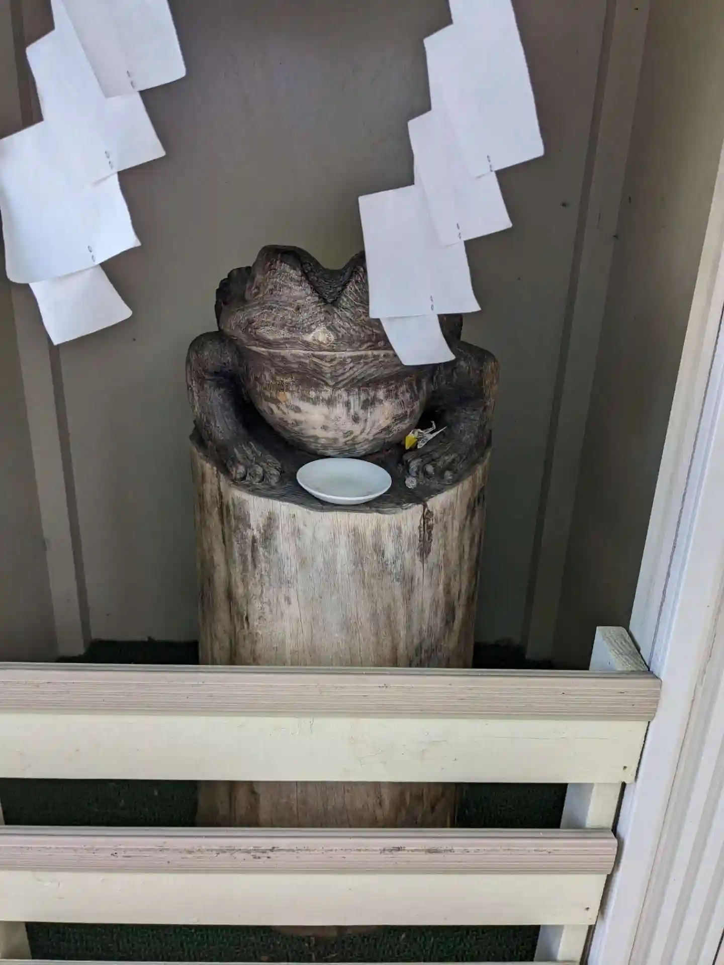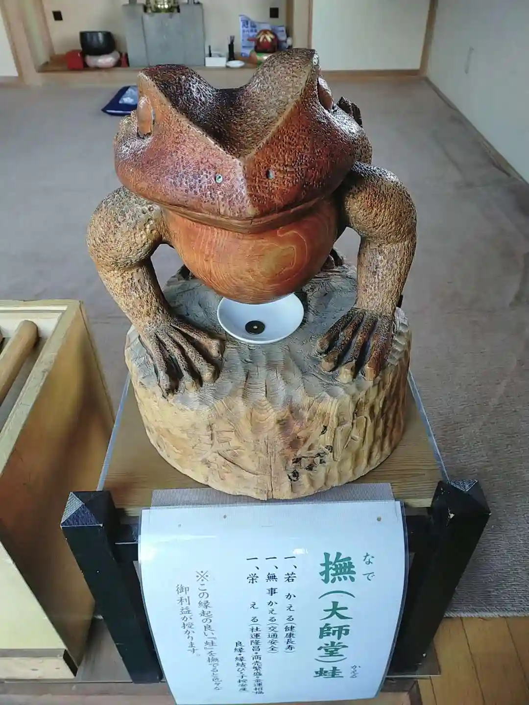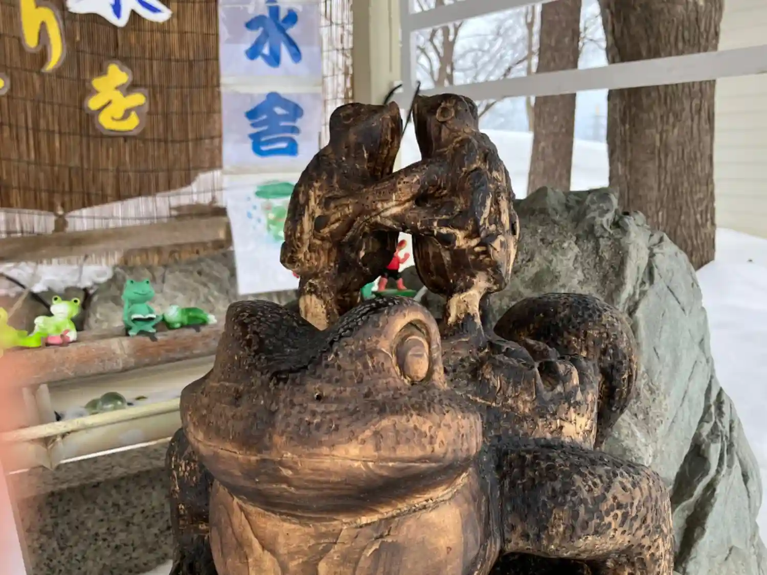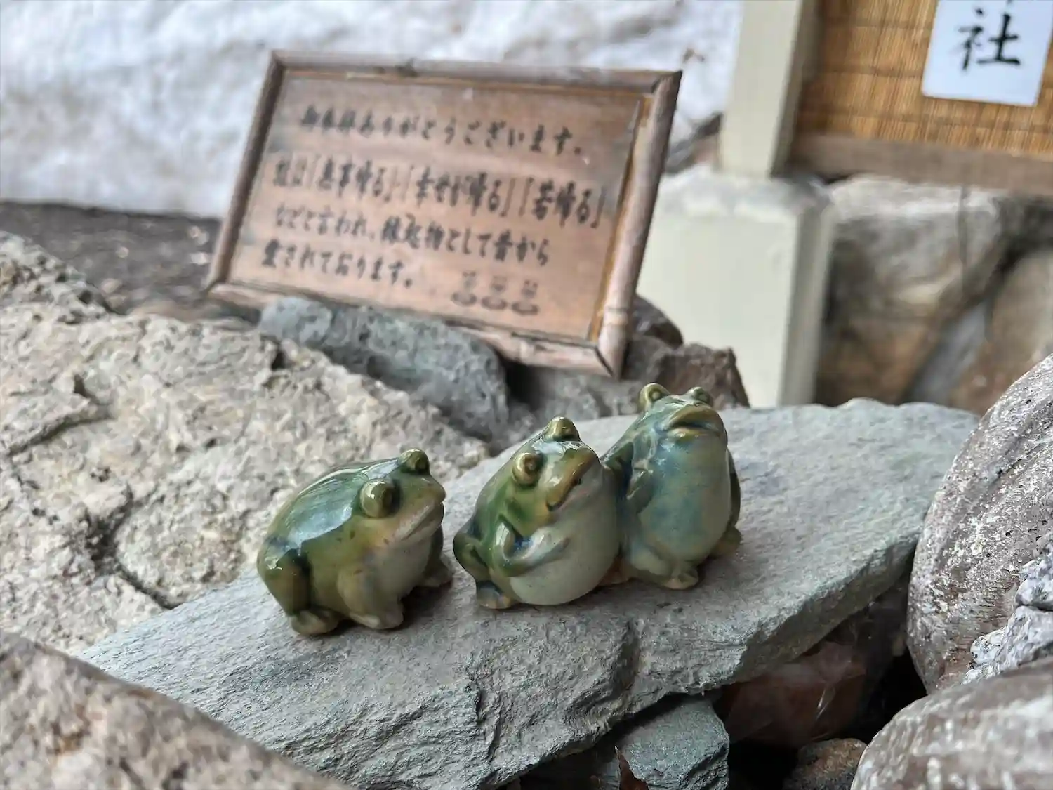 鳥居のすぐ横でカエル様がお出迎え。