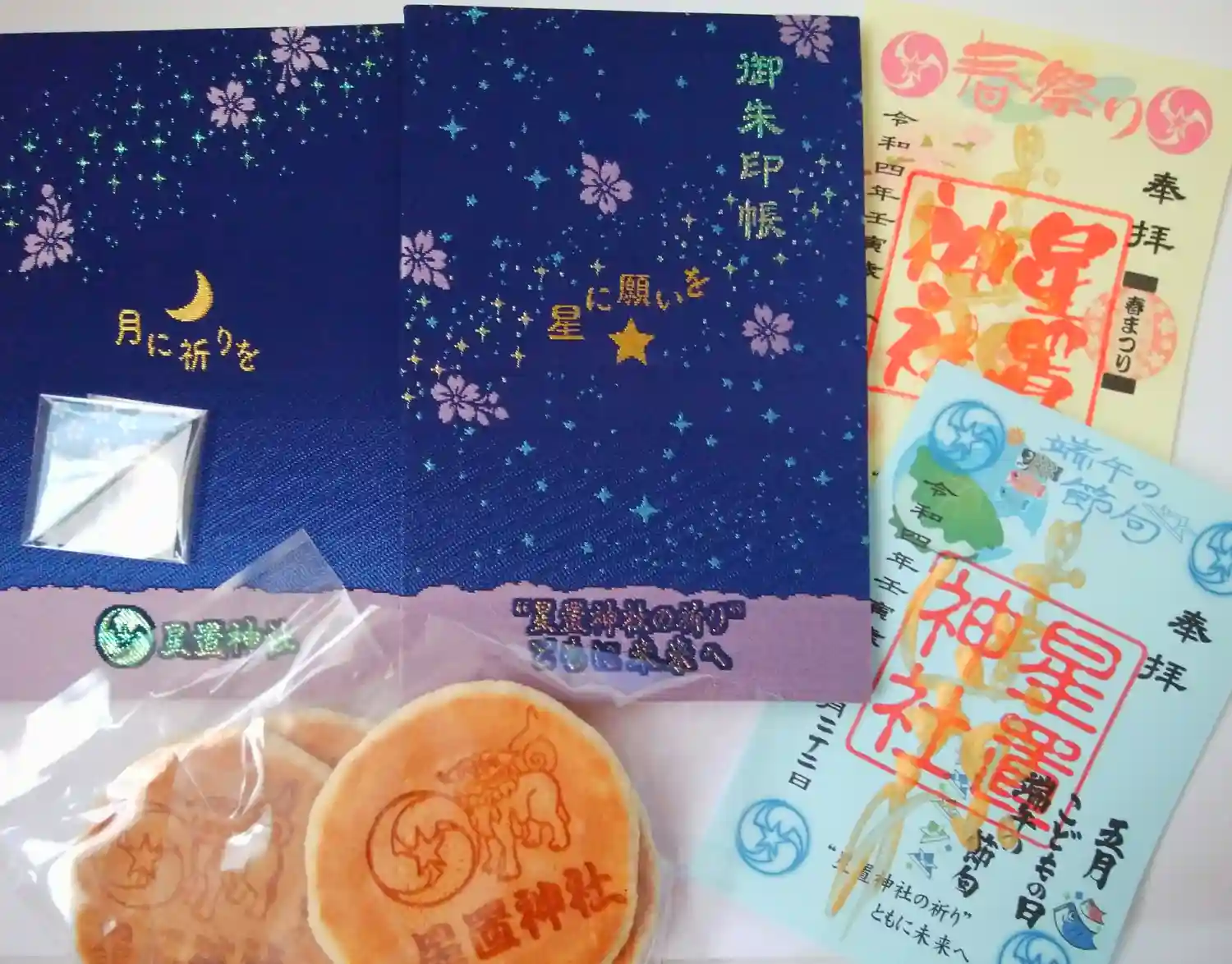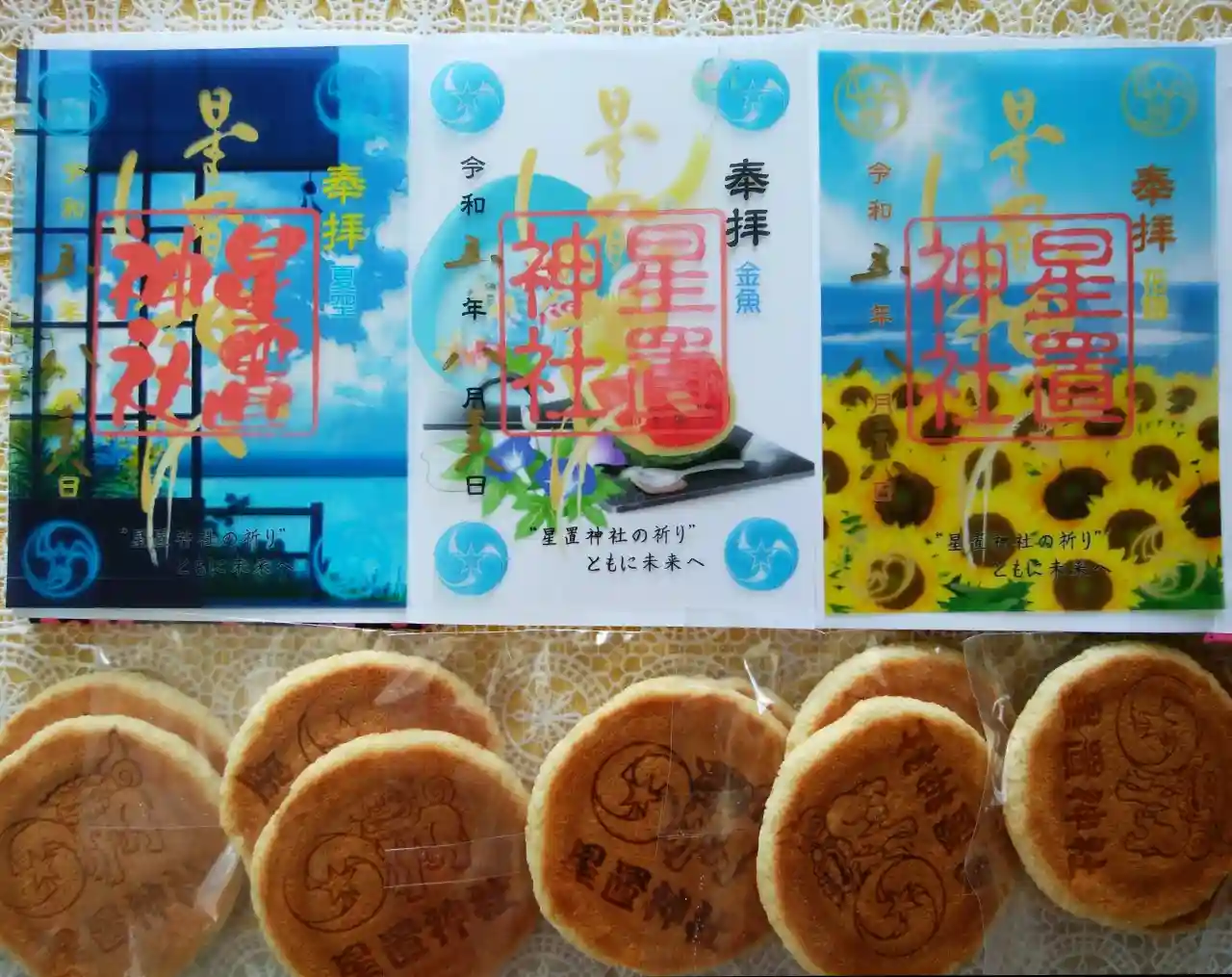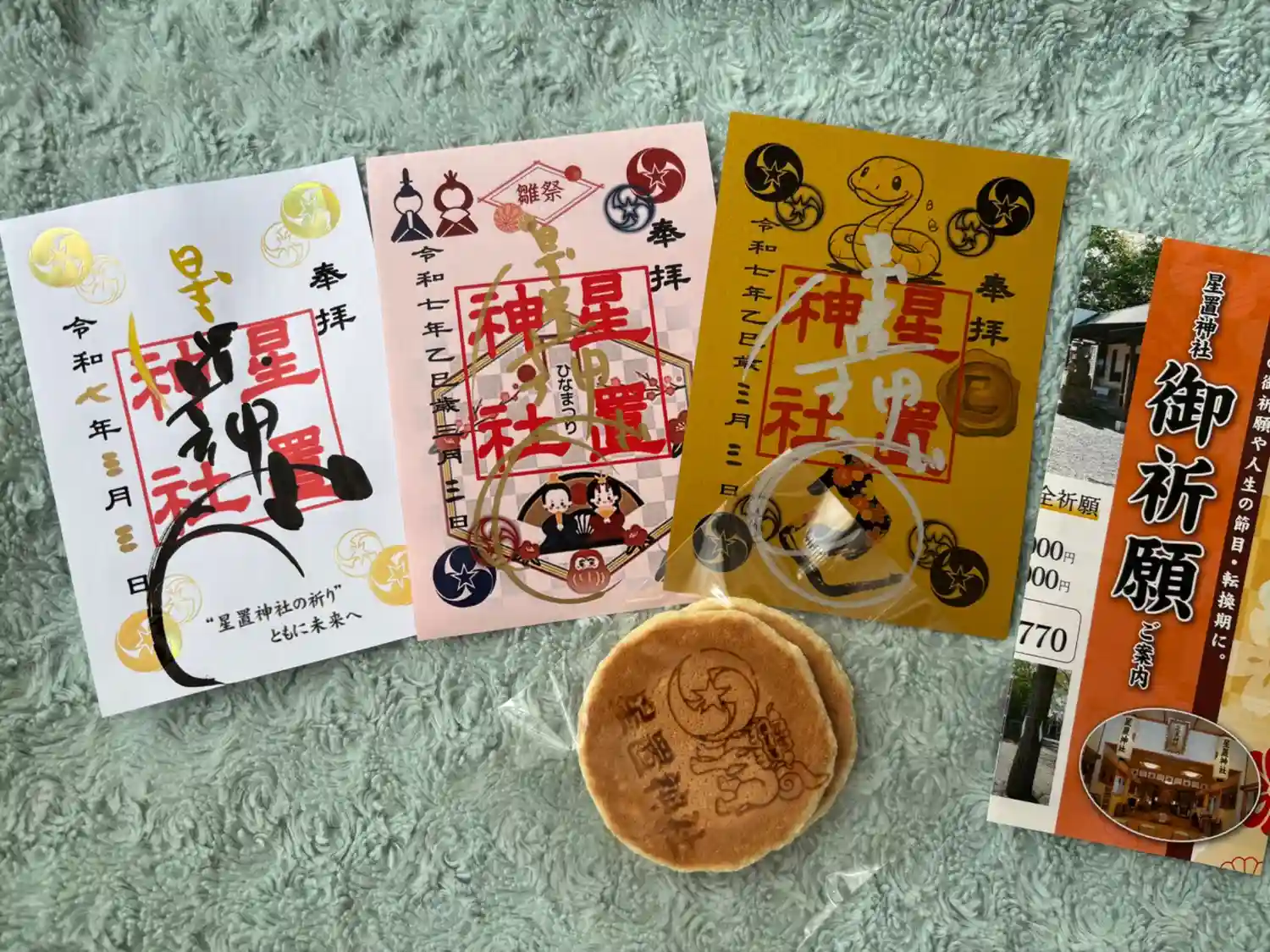 限定の御朱印満載でした。御朱印を受けた分、神社の刻印が入ったお煎餅も頂きました。