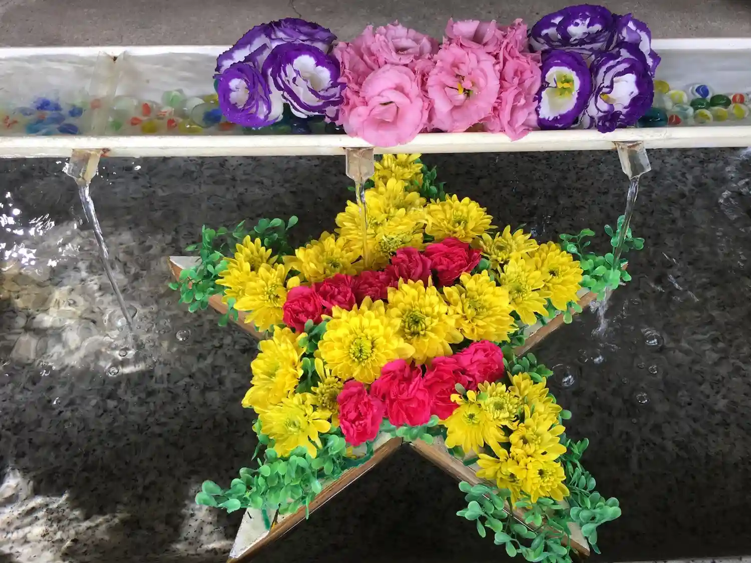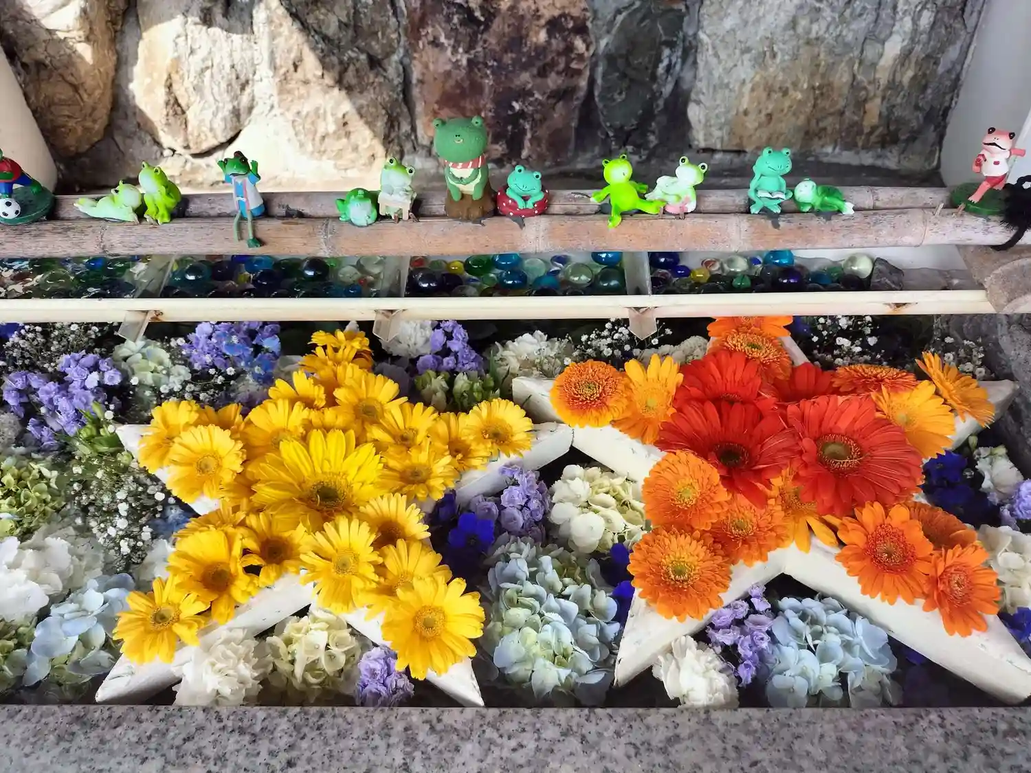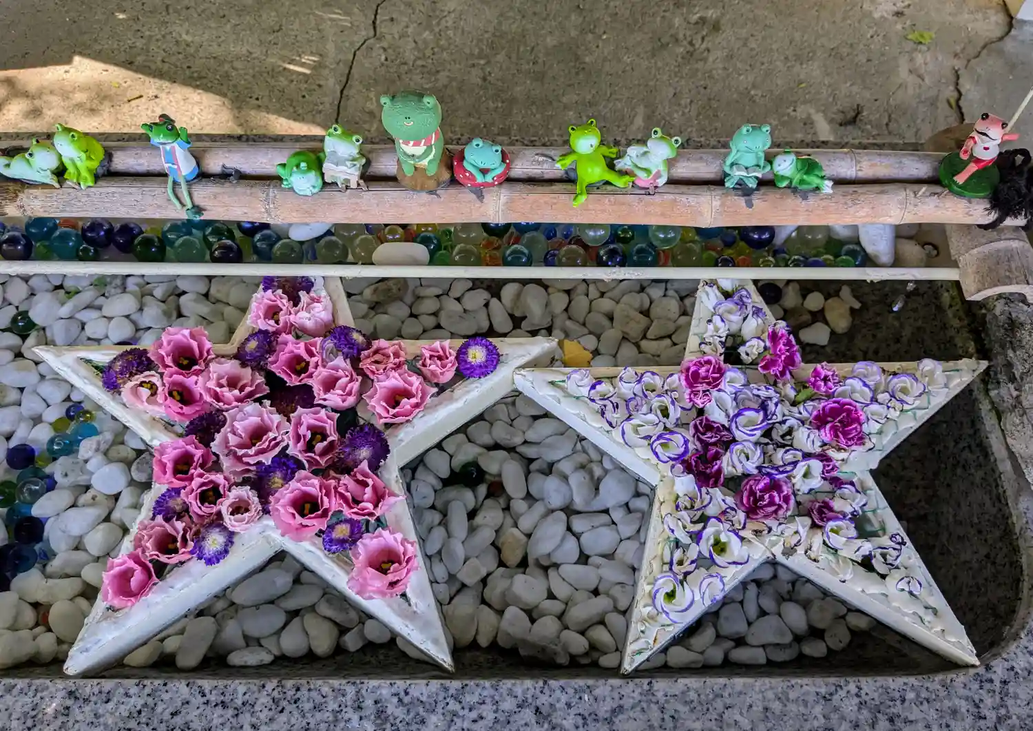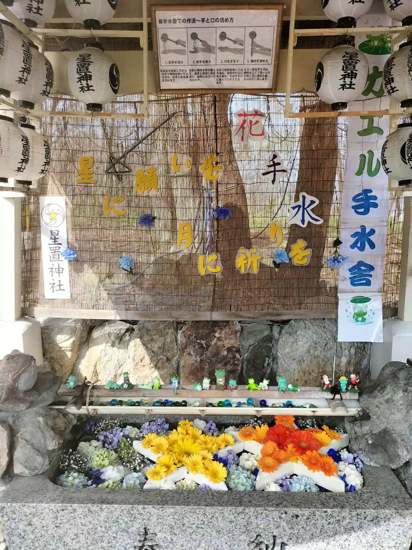 花手水の星が2つになってる😆🌟