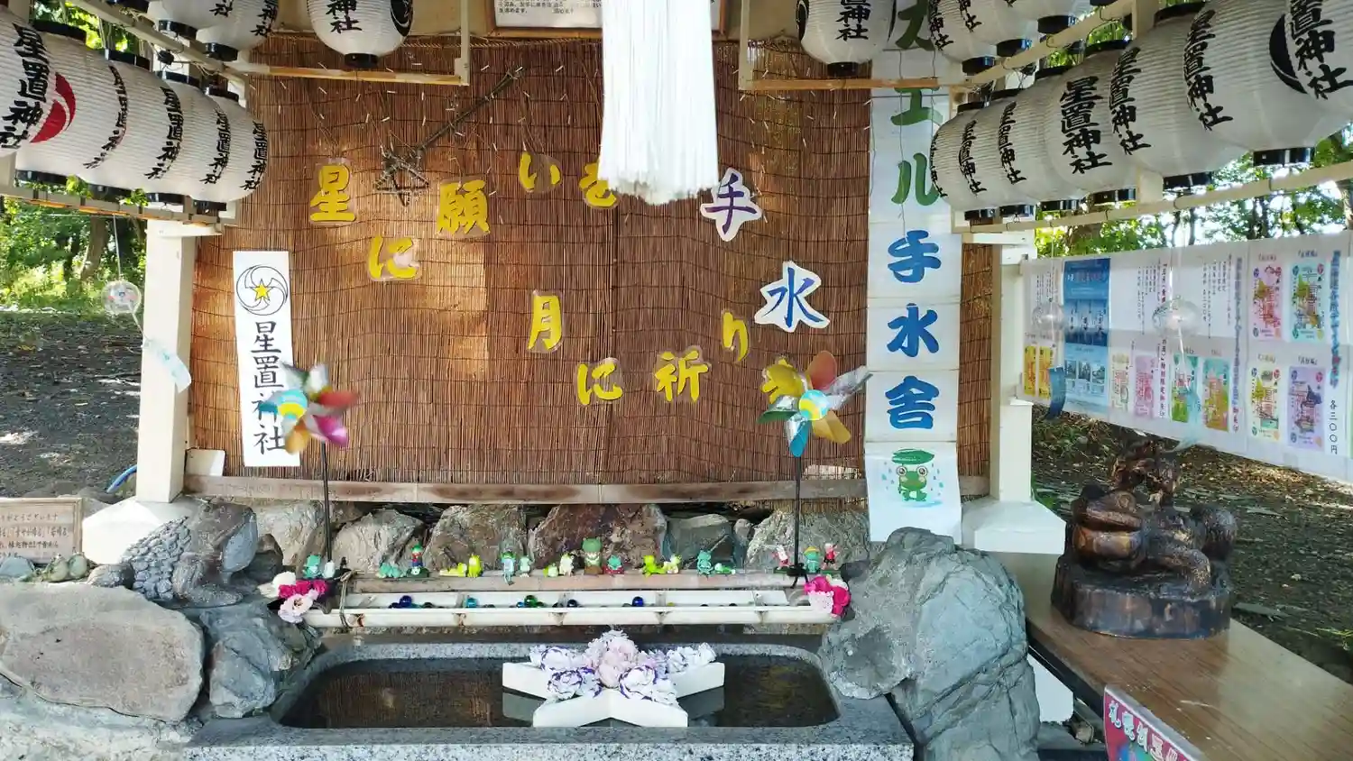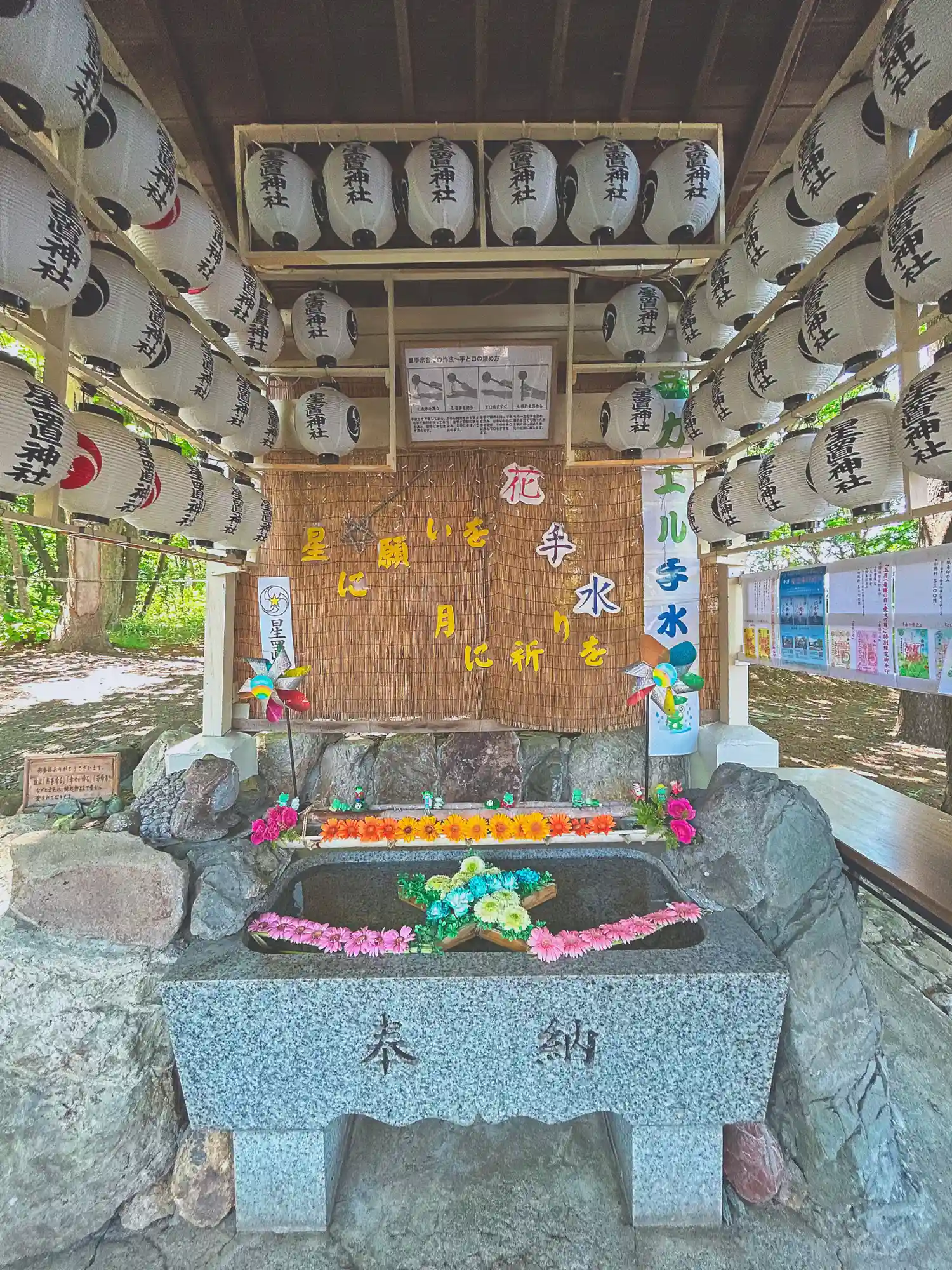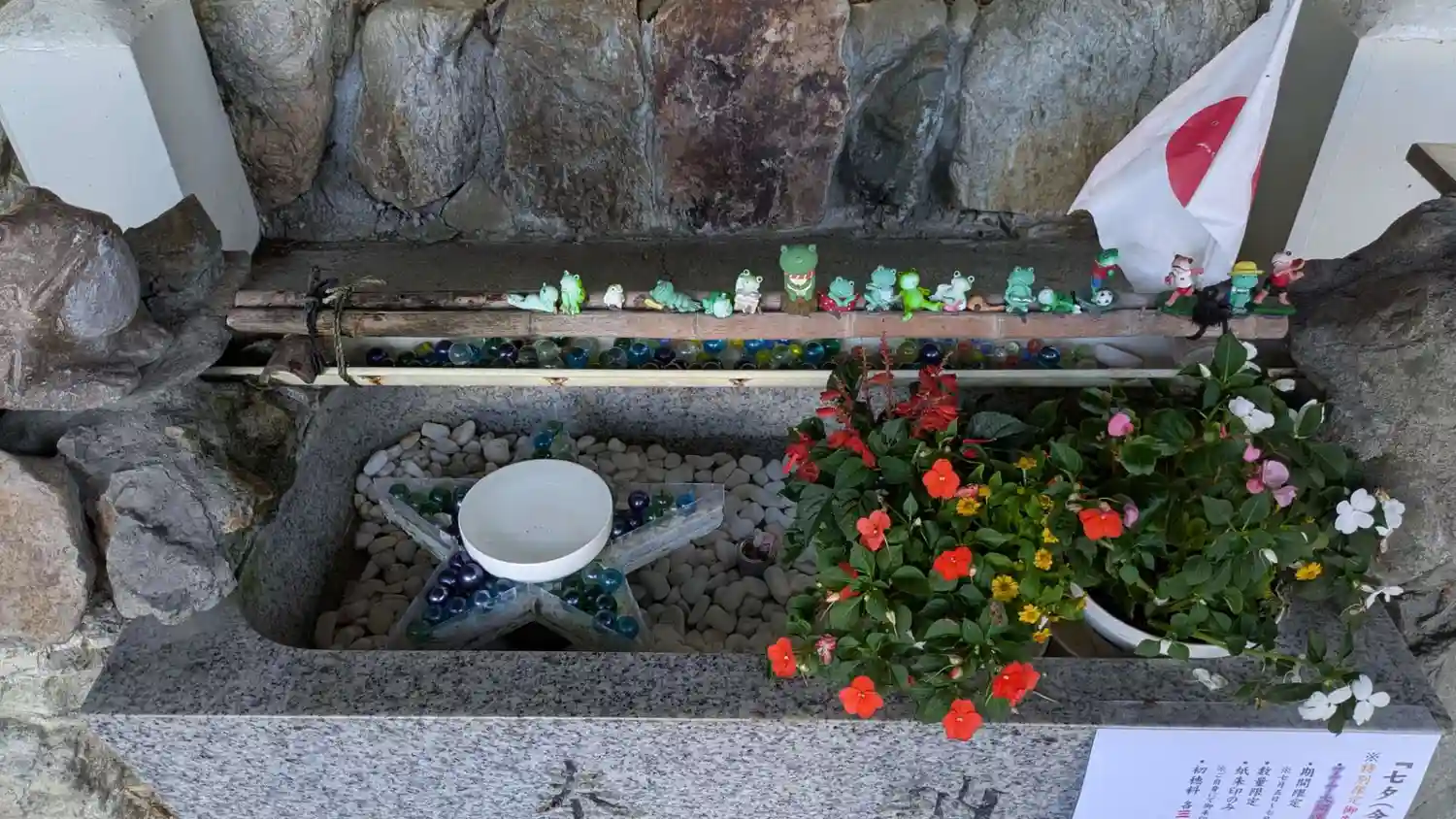 花手水の星が2つになってる😆🌟