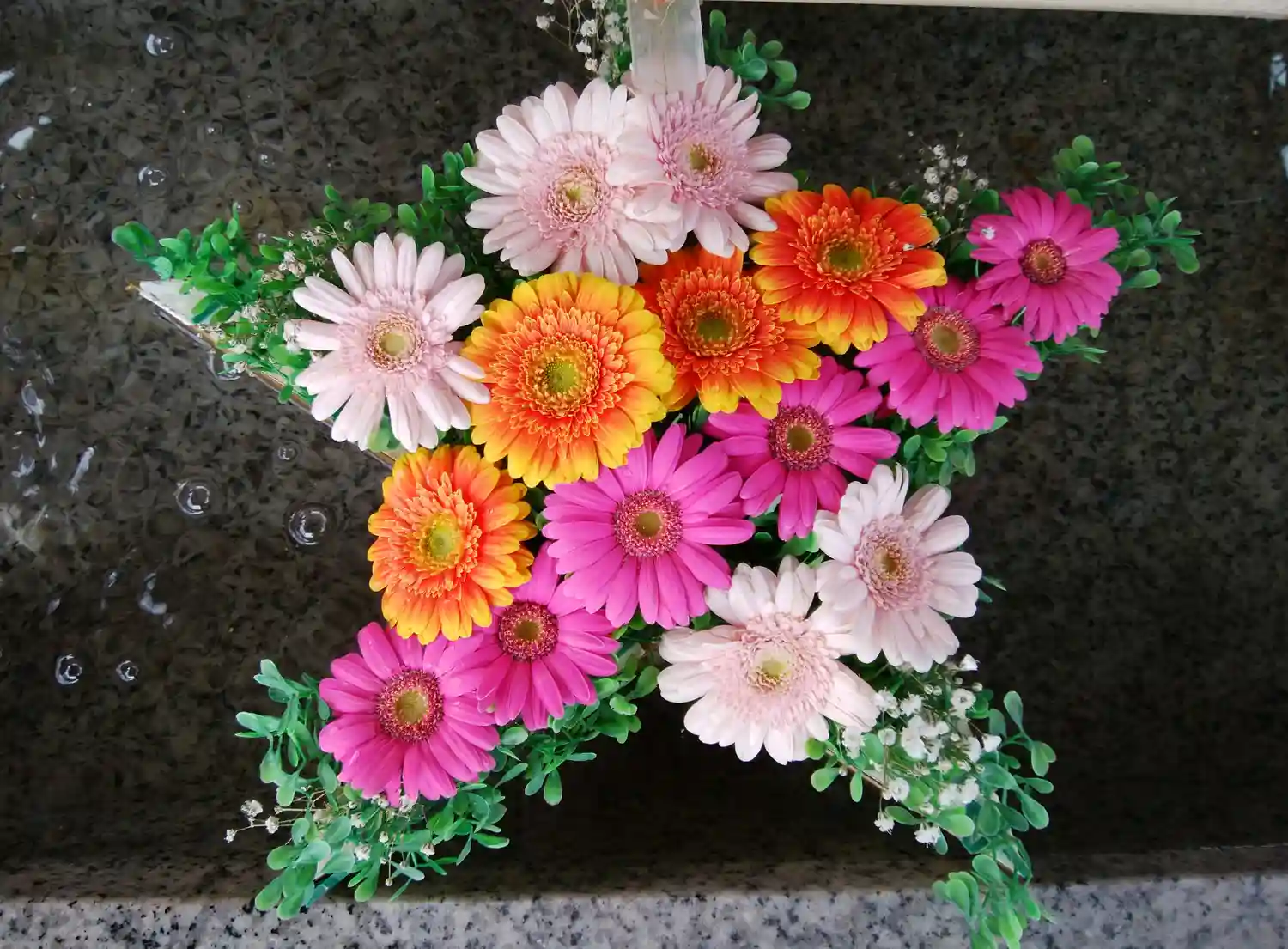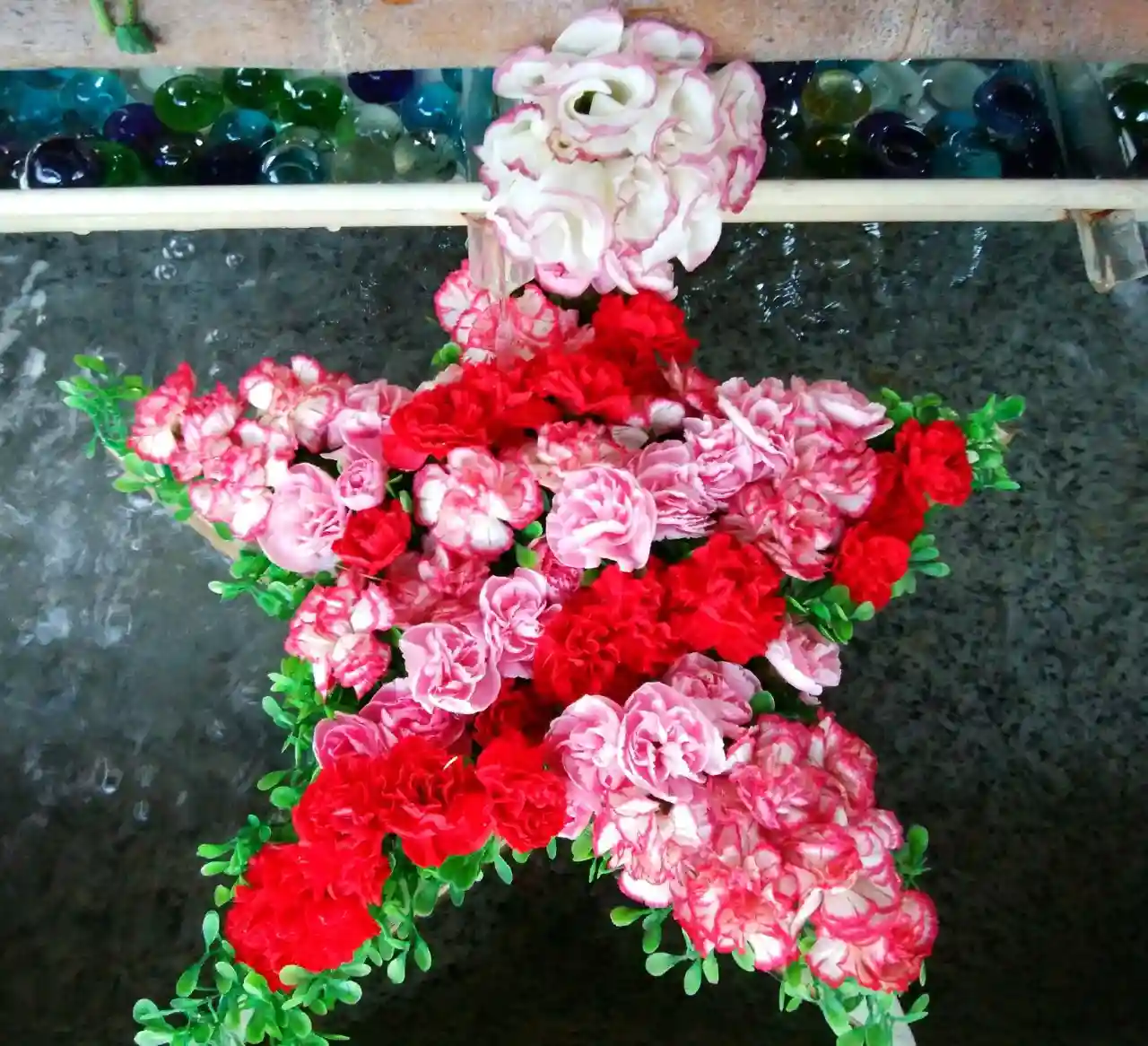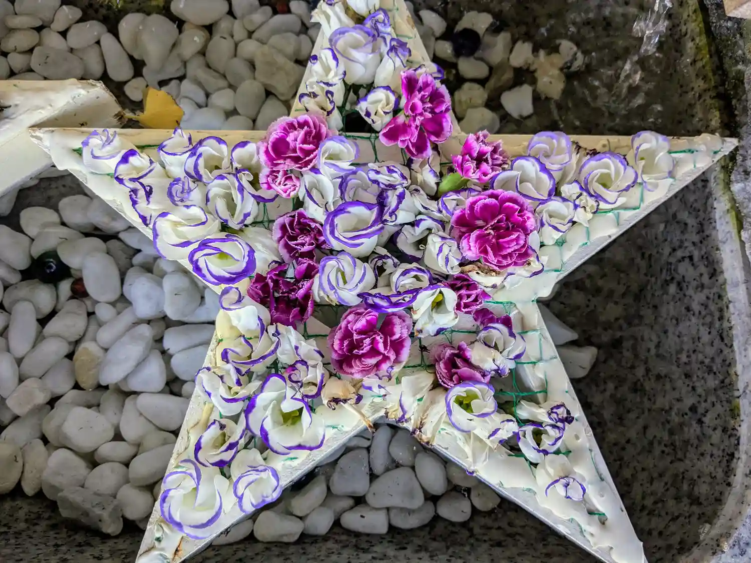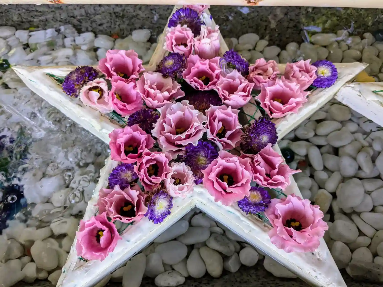 花手水の星が2つになってる😆🌟