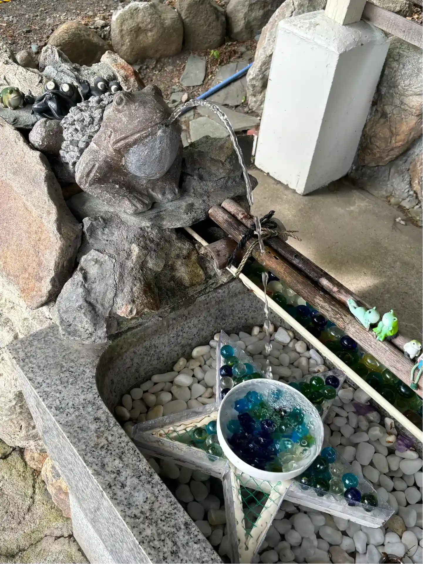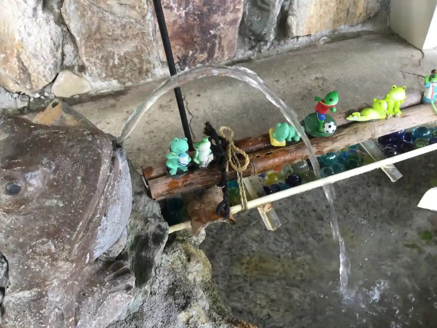 手水舎の蛙さんは近づくとセンサーで水を吹くのですが、何故か御神籤を濡らす時だけは静かにしていてくれました。