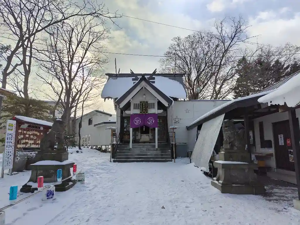 鳥居横の蛙さん、冬はピンポン押すと辛いよ〜という意味が分かりました。由緒解説が少々長めです(笑)石狩湾からの冷たい風を耐え忍んだ開拓の頃の苦労をほんの少し味わえるかもしれません。