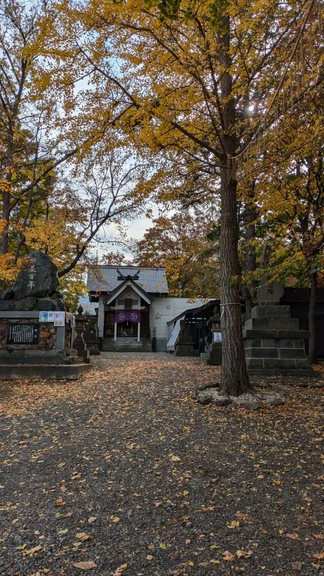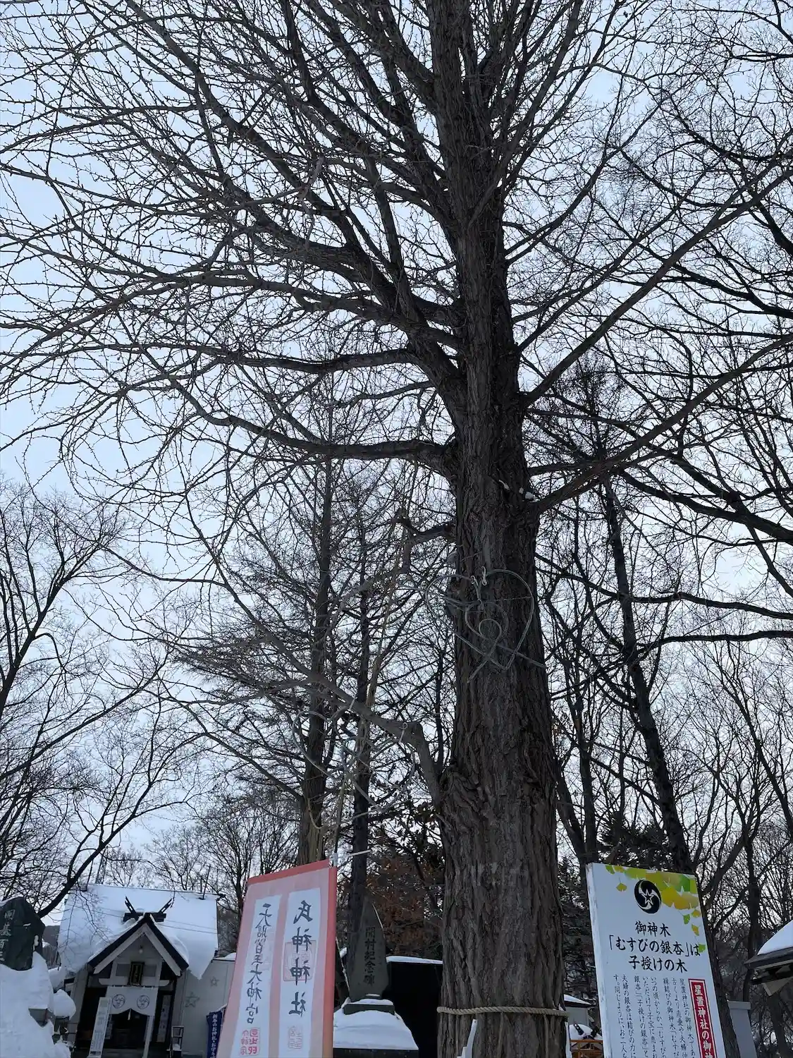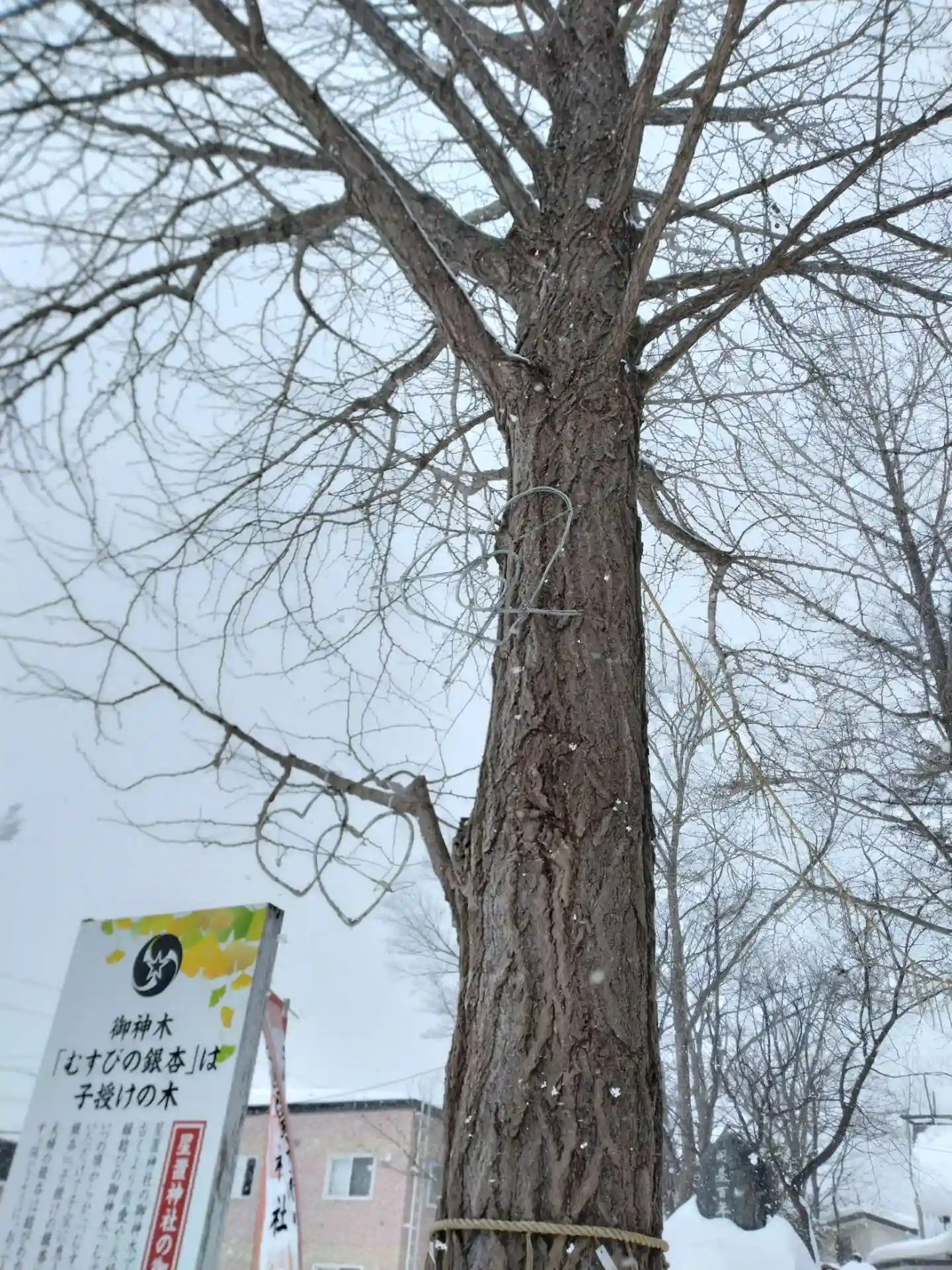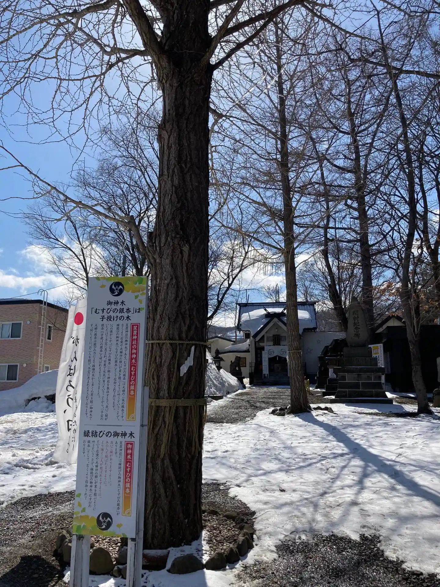 星置神社は階段を上った高台にある神社です。御神木「むすびの銀杏」は向かい合う夫婦の銀杏と、縁起の良…