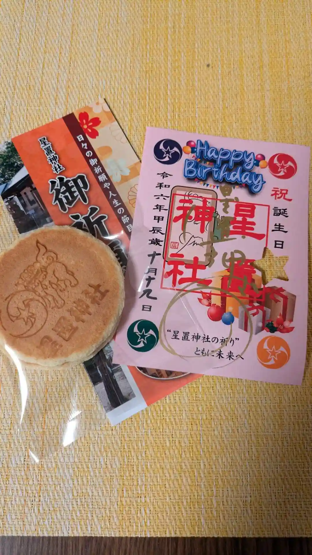 娘と参拝。御朱印と一緒におせんべいをいただきました。