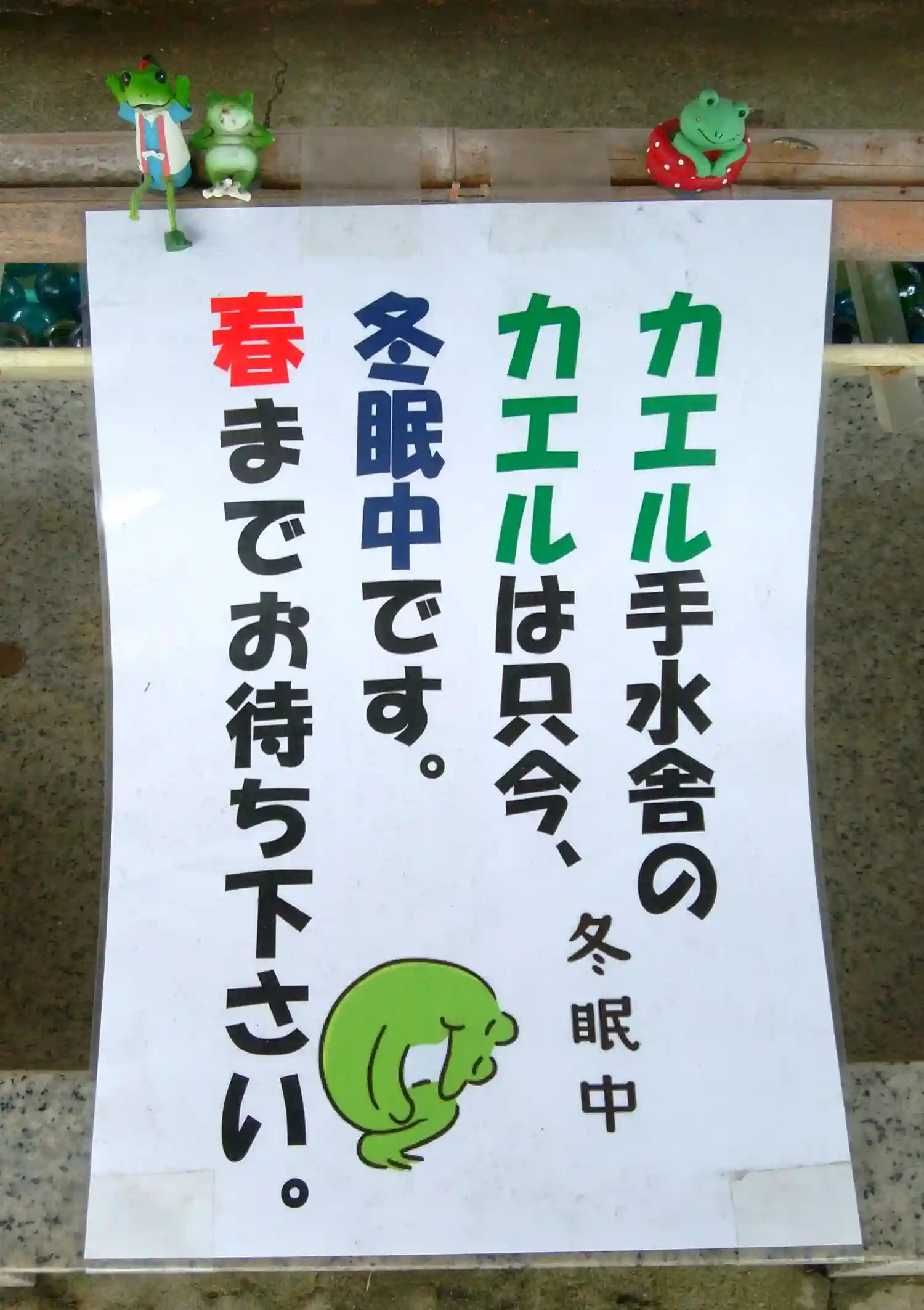 狛犬様もカエル様もマスク着用(笑)…