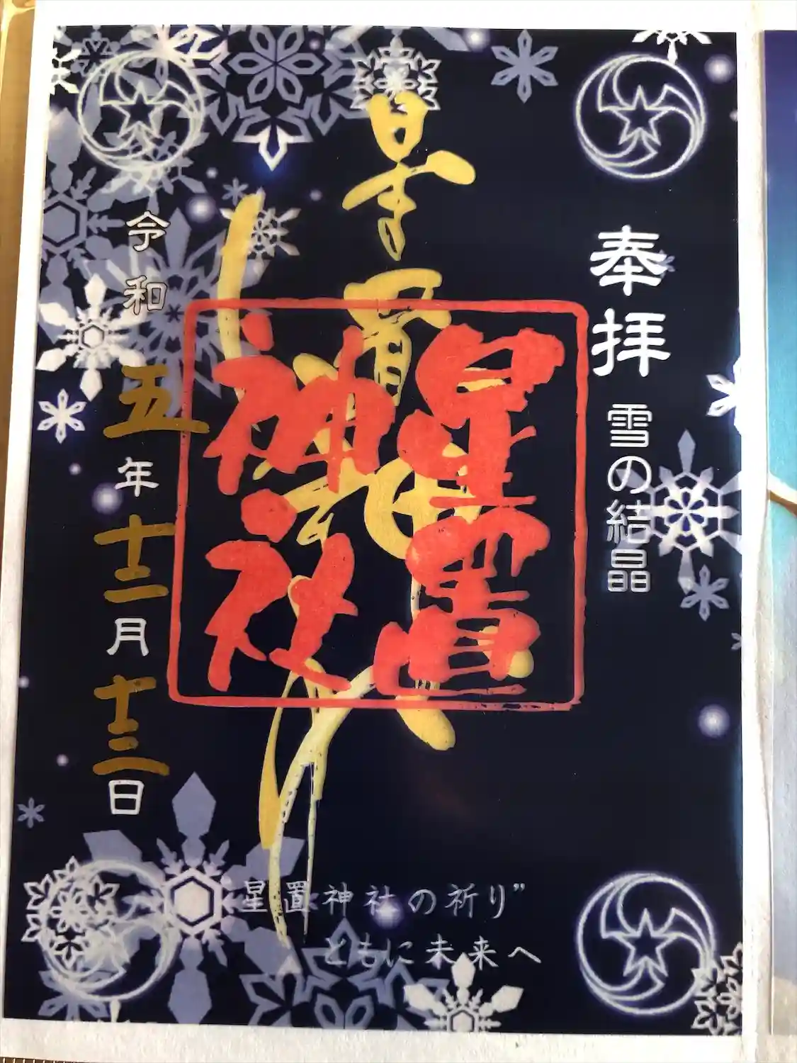 星も雪もキラキラした、すてきな御朱印帳もいただきました。