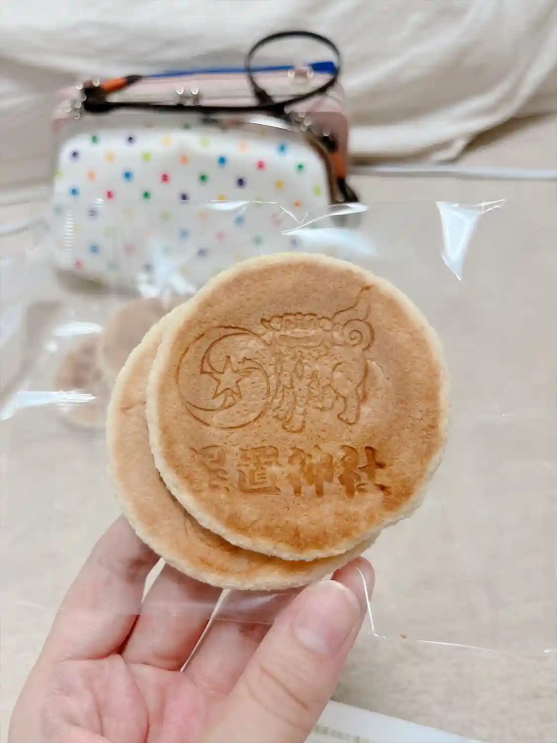 御朱印と一緒にいただいたお煎餅。甘くて緑茶に合います😋