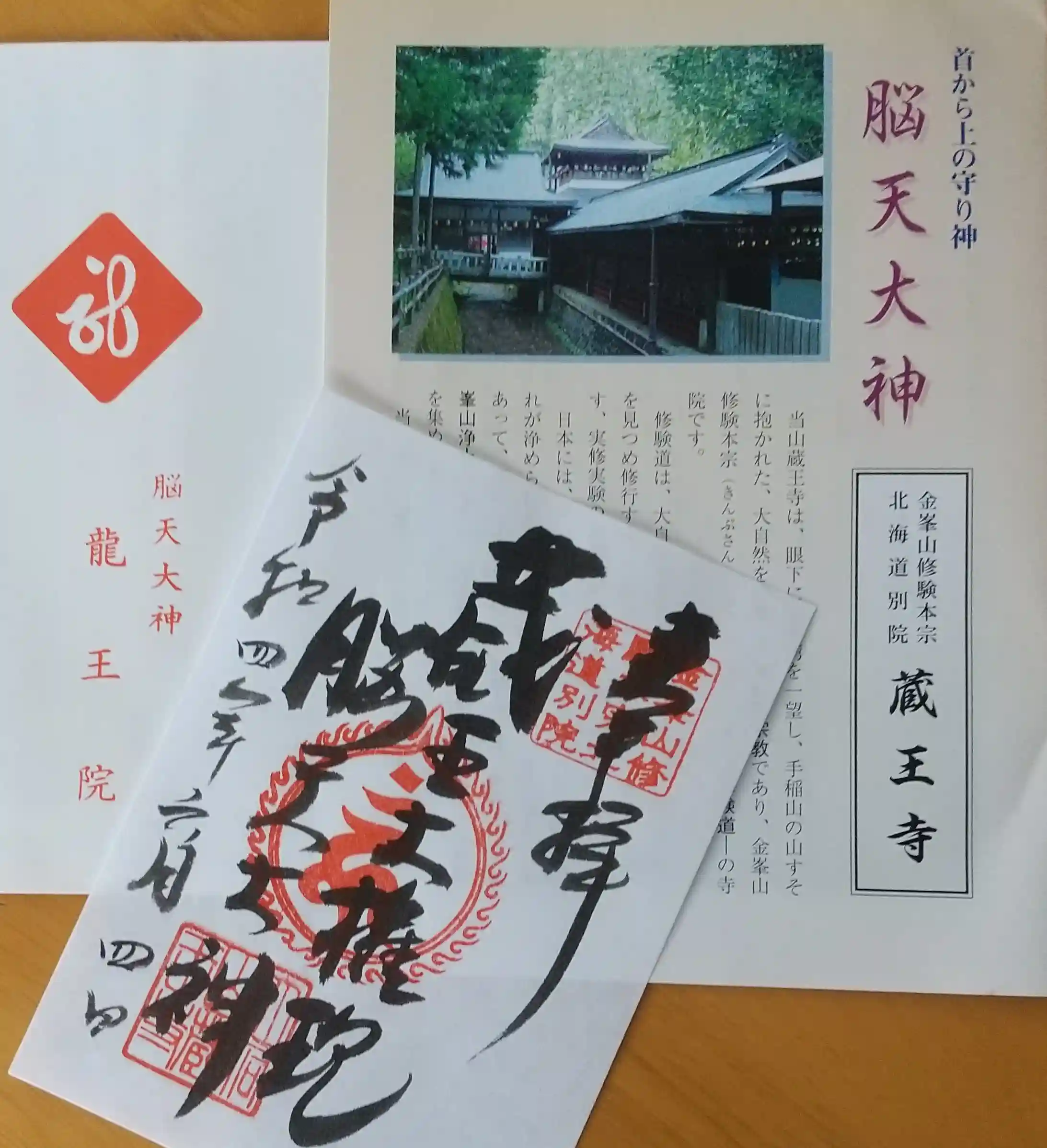 蔵王寺の御朱印には、御本尊『蔵王大権現』と御祭神『脳天大神』が入っています。御祈祷の声が響きわたる中~御守なども色々置かれた寺務所では、奥様が親切に対応してくださいました。