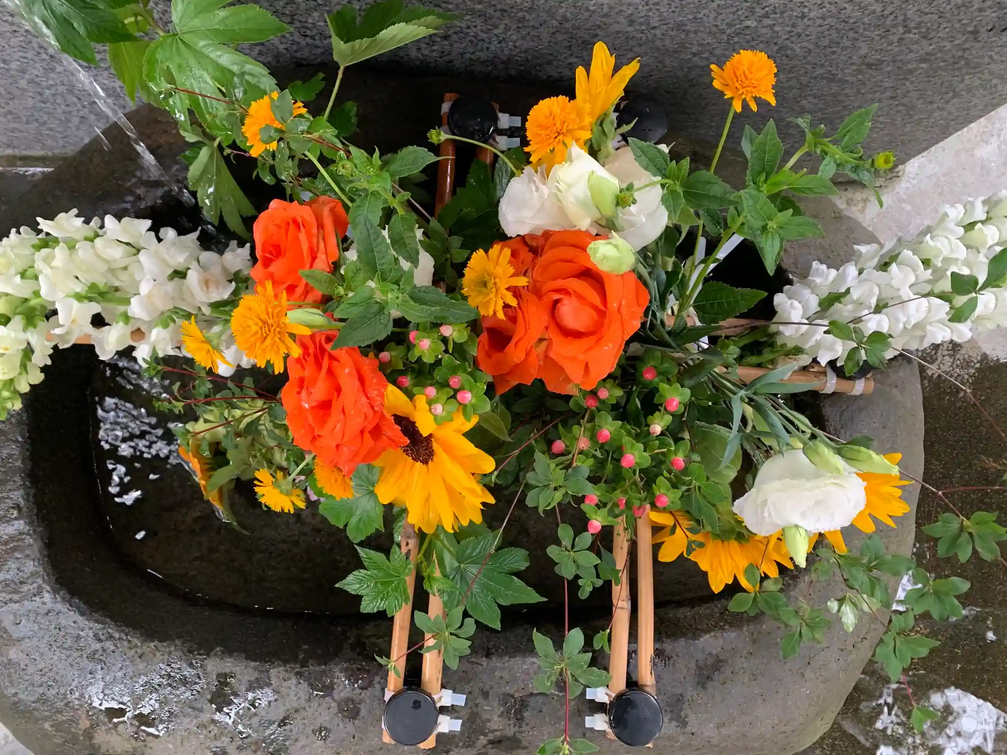 階段を登って手水舎を覗いたら花手水がっ🌻🌻