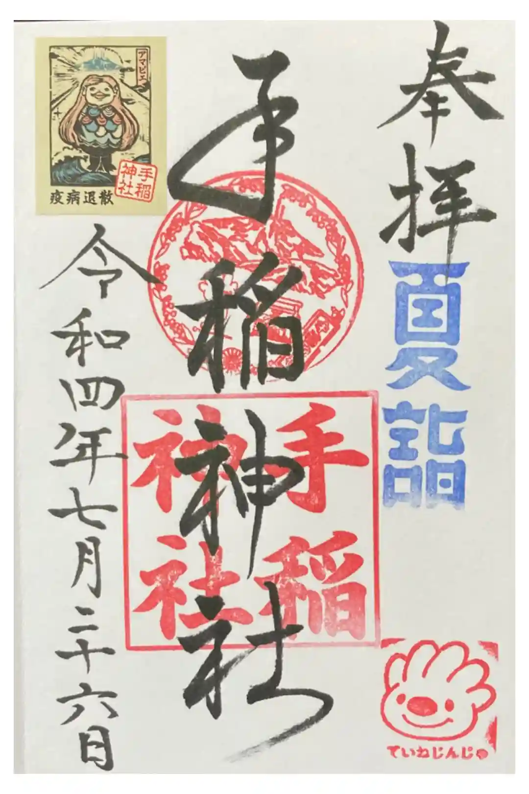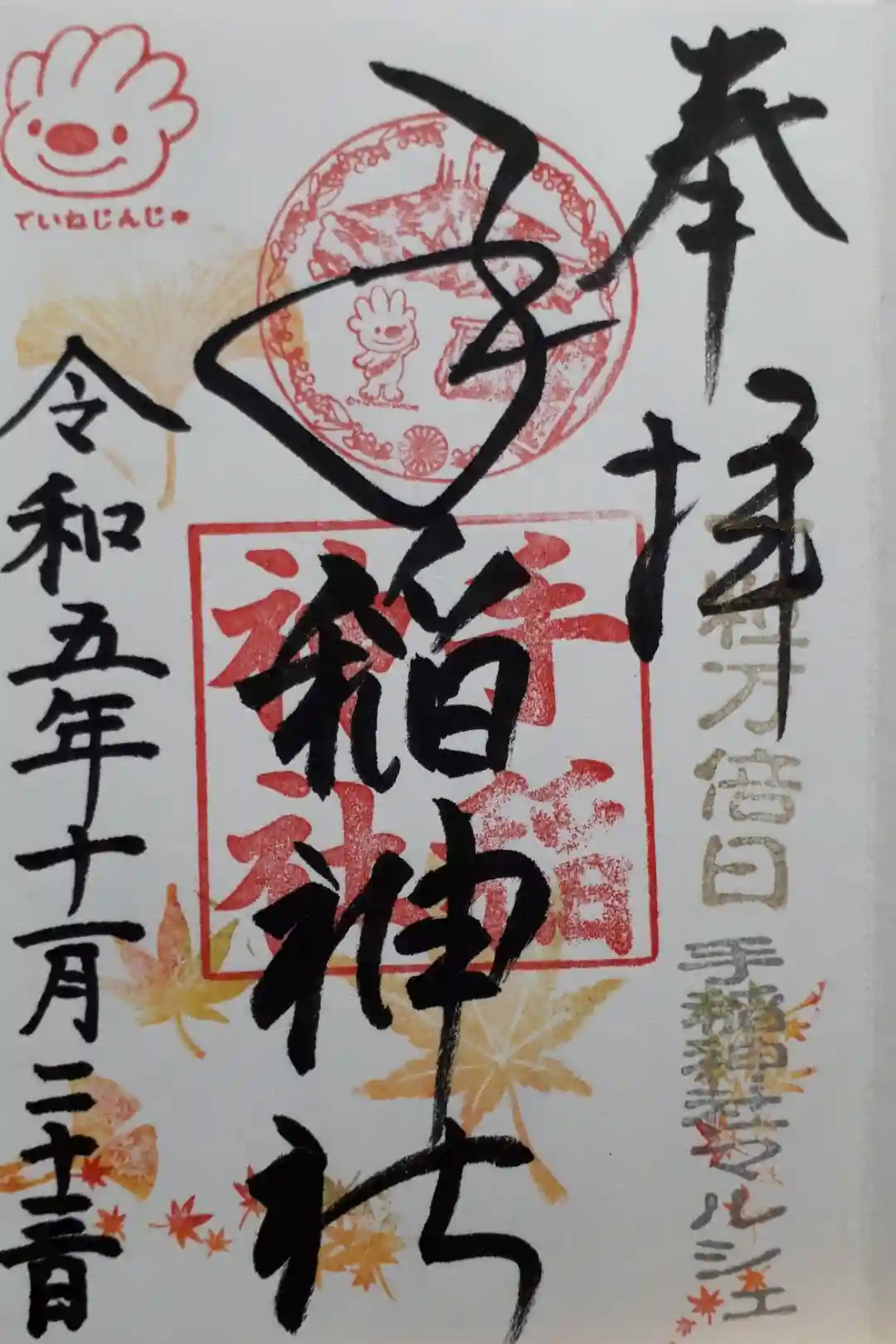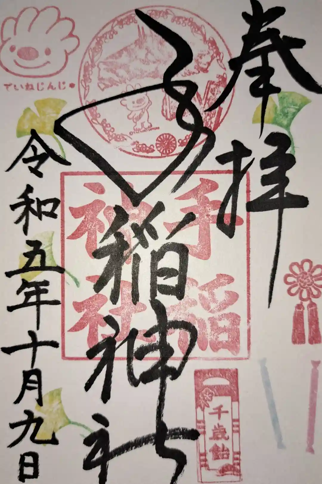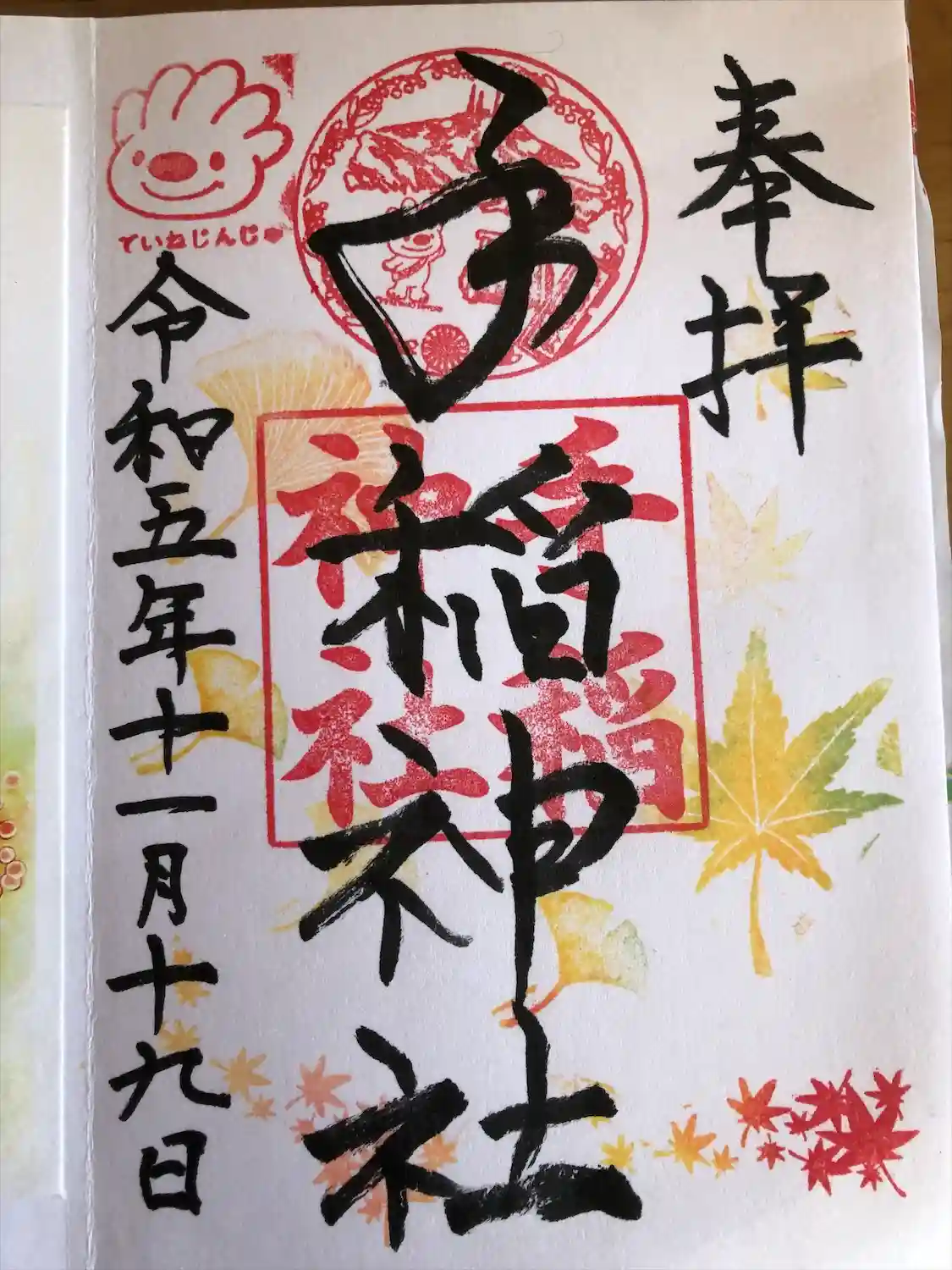 御朱印をいただくのは2回目ですが、秋の七五三バージョンでした。札幌市手稲区のマスコット“ていぬ”のスタンプ、かわいいです。