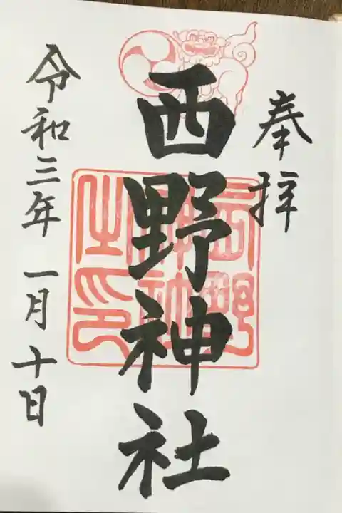 西野神社のオリジナル御朱印帳で