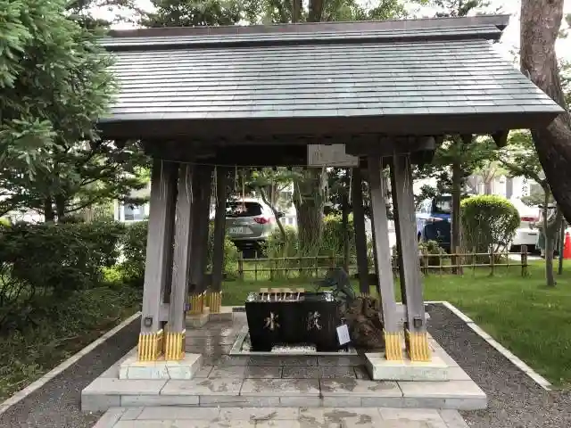 北海道は冬の間水を使えません。こちらの神社は自分でシャカシャカして、お清めしてから参拝します。